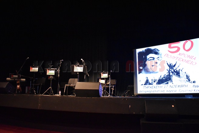 Εκδήλωση που διοργάνωσε η ΕΛΜΕ-ΚΙ για τα 50 Χρόνια του Πολυτεχνείου στο Δημοτικό Θέατρο “Ο ΚΕΦΑΛΟΣ” με προβολή αφιερώματος στο Πολυτεχνείο που ετοίμασε η Ελένη Μεμελετζόγλου και Μουσικό αφιέρωμα στον Μάνο Λοΐζο από το Μουσικό Συγκρότημα της ΕΛΜΕ-ΚΙ. Παρουσίασε η Σοφία Ποταμιάνου Πρόεδρος της ΕΛΜΕ-ΚΙ. Εκφωνήτρια του αφιερώματος ήταν η Διον. Πεντόγαλου. Στο δεύτερο μέρος το συγκρότημα της ΕΛΜΕ-ΚΙ όπου τραγούδησαν: Αφροδίτη Αλεξανδροπούλου, Μαριέτα Καλογηράτου και Γιώργος Τσιμάρας. Τα υπόλοιπα μέλη του συγκροτήματος ήταν Παναγιώτης Πασλής, Μαρία Μεσσάρη, Μάκης Τζανετάτος, Γιάννης Αργυρόπουλος, Πάρης Μεσολωράς. Στο τέλος του Video αναφέρθηκαν και για την Παλαιστίνη.