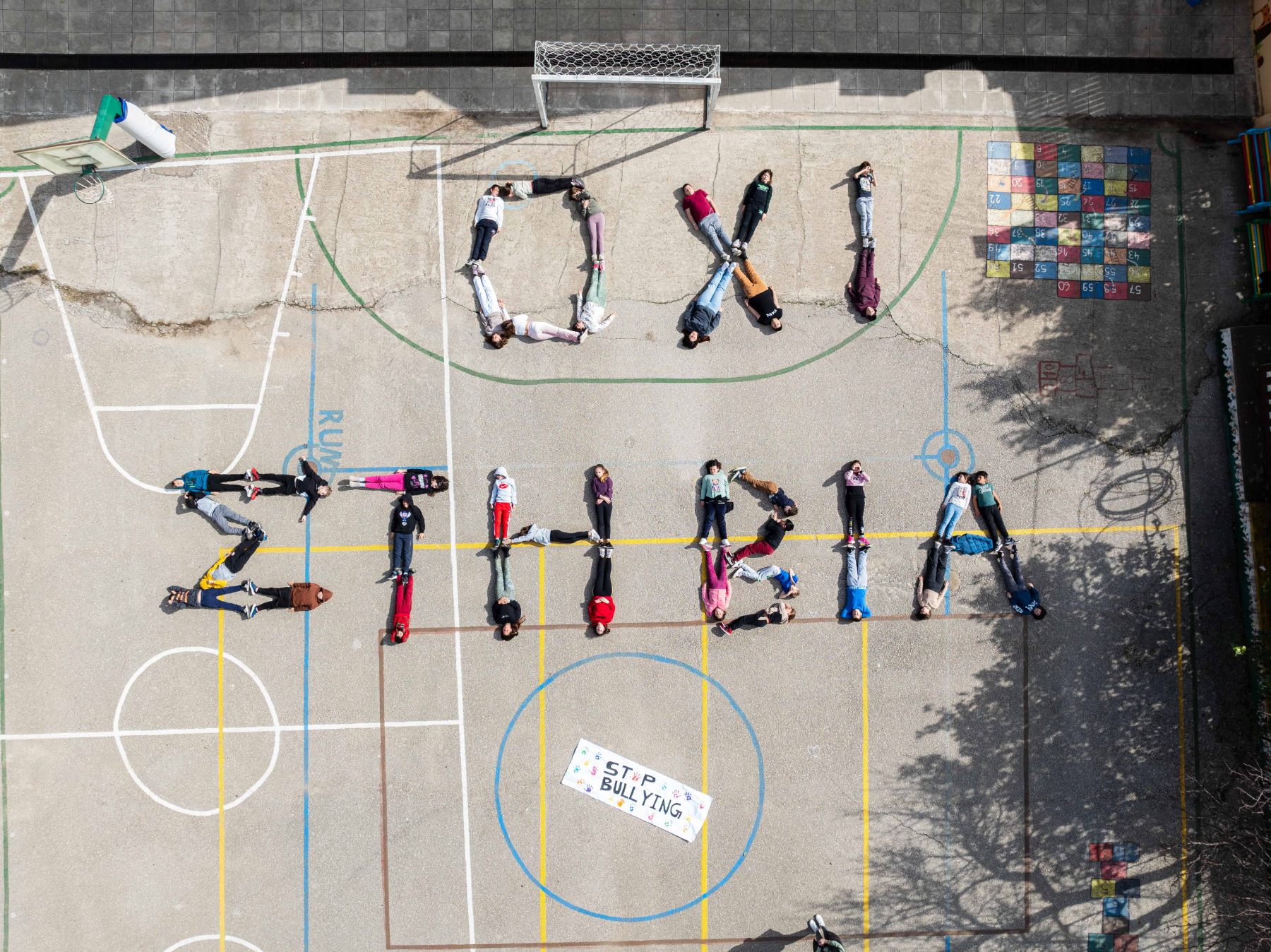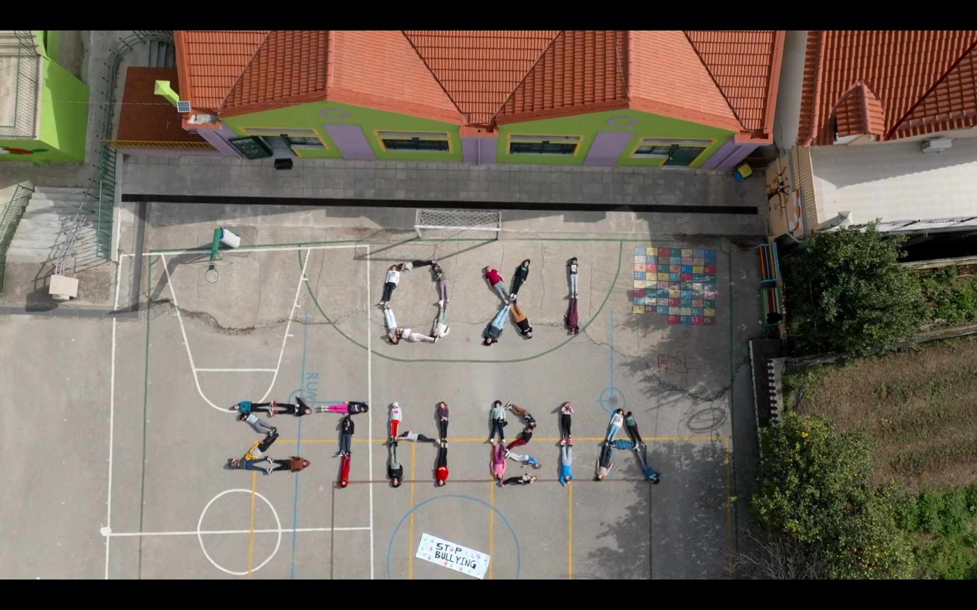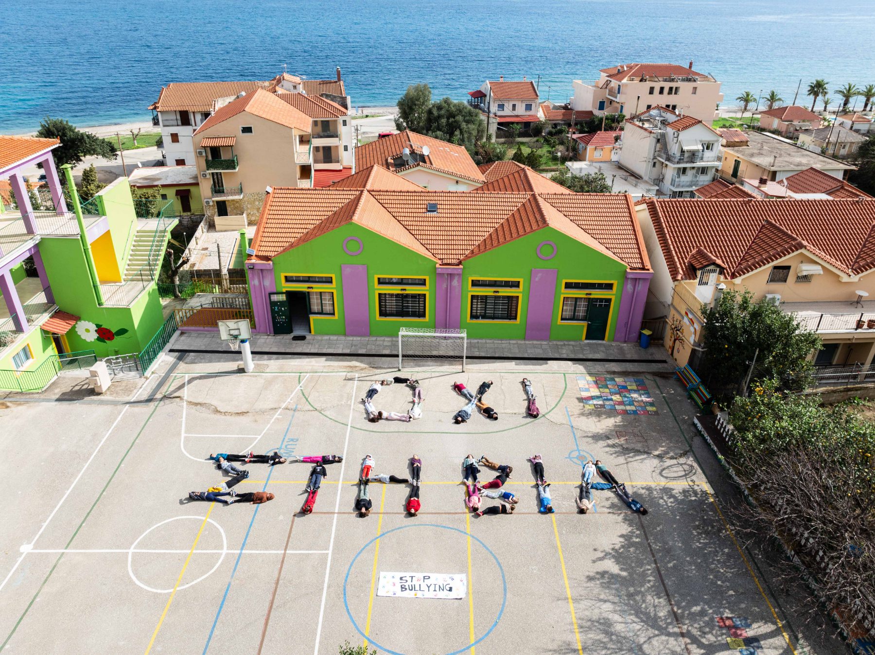 Οι μαθητές του Δημοτικού Σχολείου Πόρου Κεφαλονιάς, θέλοντας να δώσουν ένα σαφές μήνυμα για την «Ημέρα κατά της σχολικής βίας», σχημάτισαν με τα σώματά τους τη φράση-απάντηση «ΟΧΙ ΣΤΗ ΒΙΑ».