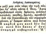 Ο Ανδρέας Λασκαράτος υπερασπίζεται στα 1896 τη μνήμη του ιεράρχη Γερμανού Καλλιγά