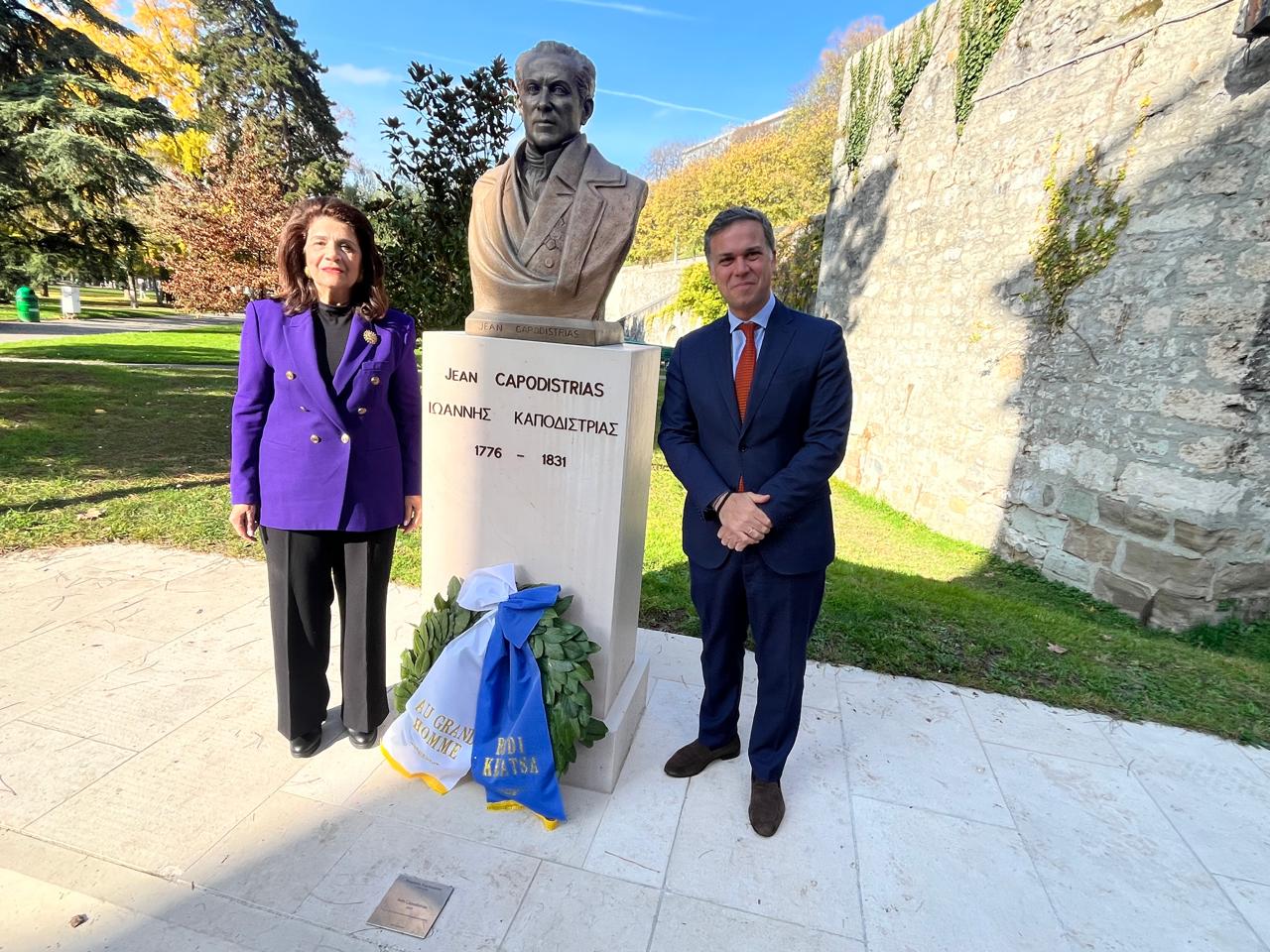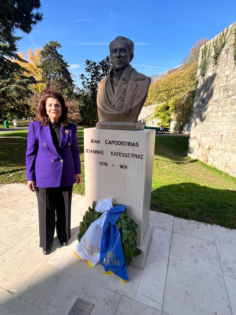 Η πρ. Περιφερειάρχης  επισκέφθηκε το parc des Bastions, τον τόπο όπου η πόλη της Γενεύης τοποθέτησε προτομή του Ιωάννη Καποδίστρια, συνοδευόμενη από τον Γεν. Πρόξενο της Ελλάδος Αλέξανδρο Γεννηματά και τον καθηγητή Pierre Ducrey, ο οποίος κρατεί ζωντανή την μνήμη και την απόδοση τιμής στον Ιωάννη Καποδίστρια.