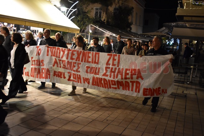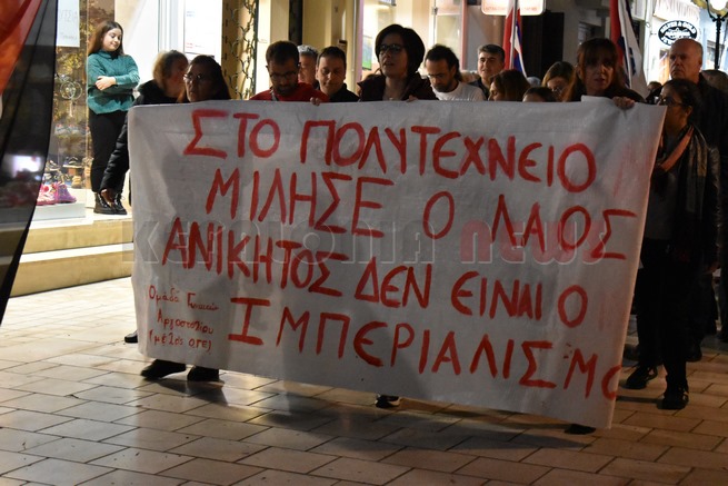 Συγκέντρωση και πορεία για το Πολυτεχνείο στο Εργατικό Κέντρο. Μίλησαν ο Δημ. Μαντζουράτος και κεντρικός ομιλητής ήταν ο Σπύρος Καμπίτσης Πρόεδρος του Εργατικού Κέντρου.