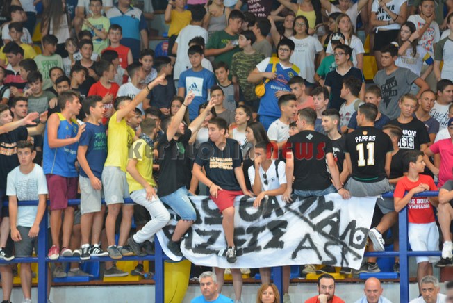 Από νωρίς χτες το απόγευμα τα φέρυ μπωτ μετέφεραν φιλάθλους στο Αργοστόλι, με αποτέλεσμα οι κερκίδες των φιλοξενουμενων στο Κλειστό Αργοστολίου “Αντώνης Τρίτσης” να γεμίζουν ασφυκτικά. Με πανό στα χέρια οι φίλαθλοι του ΝΕΟΛ και του ΑΣΚ στήριζαν τις ομάδες τους.