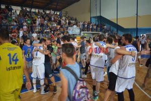 Ναι, το Ληξούρι πανηγυρίζει στο Κλειστό Αργοστολίου…. Ένα Ληξούρι μιά αγκαλιά. Να κυκλώνει και να αγκαλιάζει τους φοβερούς παίκτες του ΝΕΟΛ. Έναν Ιερέα να παρακολουθεί από τις κερκίδες και, ομολογουμένως, η θεία παρέμβαση υπήρχε και την νιώσαμε στο τέλος της πρώτης παράτασης.