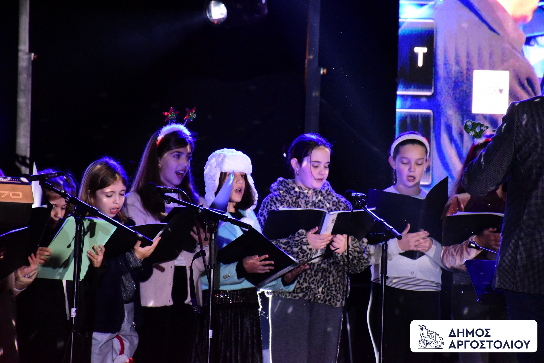 Την όμορφη Χριστουγεννιάτικη γιορτή άνοιξε η Παιδική Χορωδία του Δήμου Αργοστολίου, υπό τη διεύθυνση του μαέστρου Άγγελου Μουρελάτου, με τον Γρηγόρη Βλαχούλη στο πιάνο.