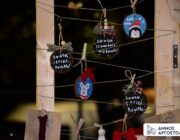 Τη «φλόγα της αγάπης» στο Χριστουγεννιάτικο Δέντρο άναψαν συμβολικά τα παιδιά της θεατρικής ομάδας ART των Τζένης Παπαδημάτου, Νικολέτας Βλαβιανού και Έφης Παππά.