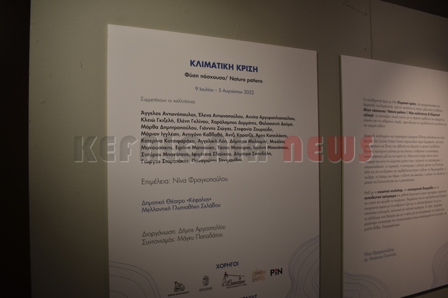 Ένα….υπερθέαμα ζωγραφικής με εκπληκτικά έργα θα λέγαμε, αλλά και με ανταπόκριση από τους Αργοστολιώτες που επισκέφθηκαν την έκθεση με μεγάλο ενδιαφέρον. Το πολυθεματικό έργο με τίτλο Κλιματική κρίση, που πραγματοποιείται στο Αργοστόλι της Κεφαλονιάς, τιμά την ικανότητα της τέχνης μέσα από τις εκθέσεις “Φύση πάσχουσα / Natura patiens” & “Νέοι καλλιτέχνες & Κλιματική αλλαγή”, να προσφέρει ισχυρή εικόνα για το τεράστιο πρόβλημα που αφορά τον πλανήτη και την ανθρώπινη ύπαρξη, αφυπνίζοντας την περιβαλλοντική συνείδηση και την ατομική και κοινωνική ευθύνη. Είκοσι έξι καταξιωμένοι σύγχρονοι Έλληνες καλλιτέχνες και οκτώ φοιτητές δύο Σχολών Καλών Τεχνών παρουσιάζουν έργα ζωγραφικής, γλυπτικής, εγκαταστάσεις και βίντεο που σέβονται και εξυμνούν το φυσικό περιβάλλον, θίγοντας ταυτόχρονα τρόπους με του οποίους ο άνθρωπος το καταστρέφει, καταστρέφοντας μαζί και τον εαυτό του.