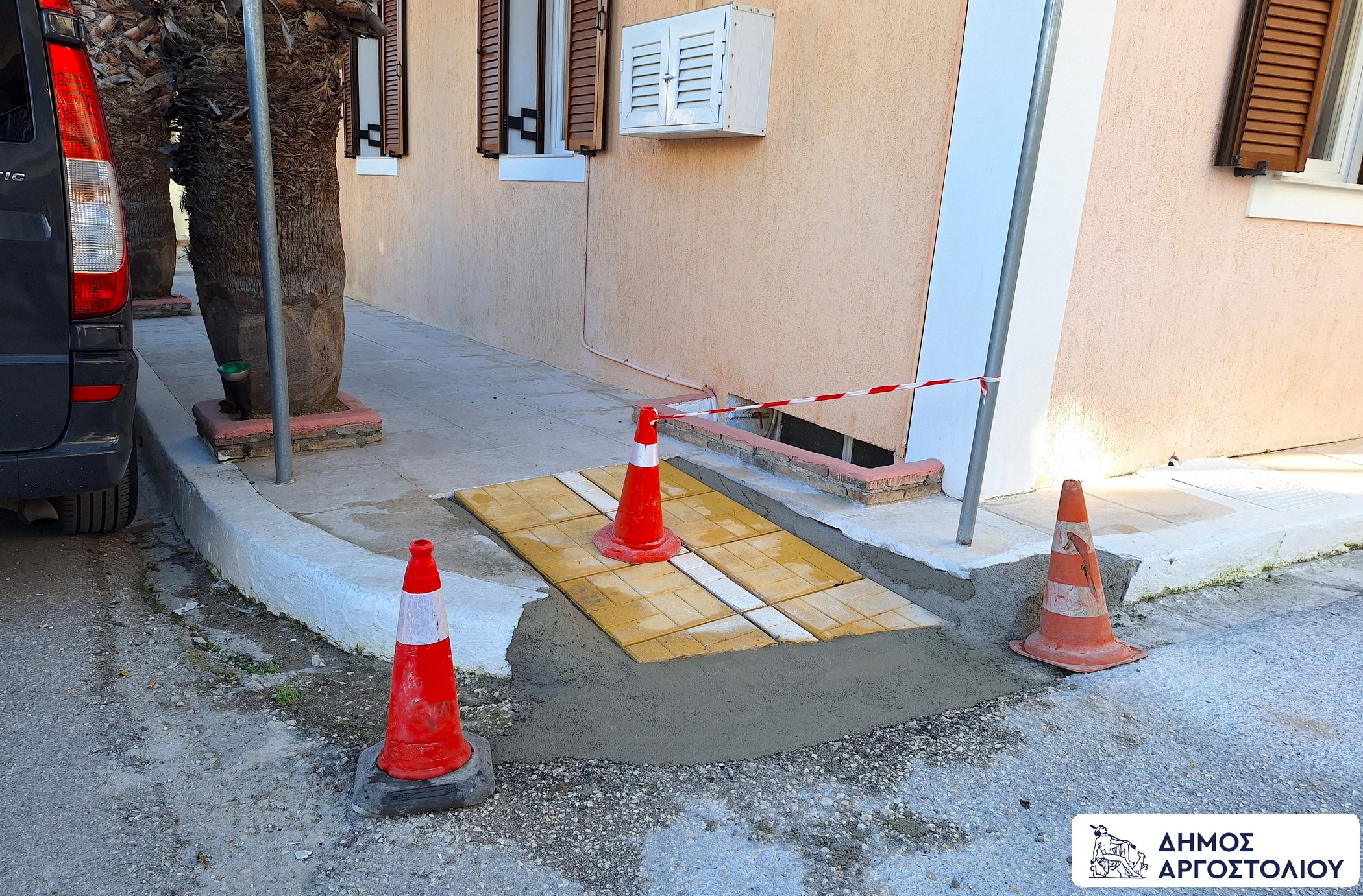 Οι νέες ράμπες, που τοποθετούνται για πρώτη φορά στο Αργοστόλι, έχουν σωστότερη κλίση, είναι πιο ευκρινείς λόγω του κίτρινου χρώματος των πλακών τους και έχουν αντιολισθητικές επιφάνειες.