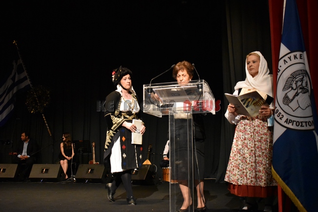 Την εκδήλωση χαιρέτησαν, εκτός της Προέδρου του Λύκειου Ελληνίδων Αργοστολίου Ευρώπη Μοσχονά, Ο Σεβασμιότατος Μητροπολίτης κ. Δημήτριος,   ο Βουλευτής κ. Παν. Καππάτος, η εκπρόσωπος του αντιπεριφερειάρχη κ. Σταύρου Τραυλού η κ. Ιωαν. Μαρκέτου,και ο αντιδήμαρχος πολιτισμού του Δήμου Αργοστολίου κ. Γ. Τσιλιμιδός. Χαιρέτησαν επίσης και οι επικεφαλής των Συλλόγων. Εκεί ήταν ο Πρόεδρος της ΠΕΔ-ΙΝ κ. Αλ. Παρίσης, ο πρώην αντιπεριφερειάρχης κ. Σπ. Γαλιατσάτος και ο Δημοτικός Σύμβουλος Σπ. Σαμούρης.