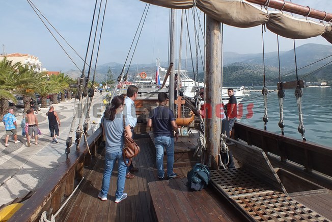 Ένα υπέροχο ξύλινο καράβι επισκεφθήκαμε μετά από πρόσκληση του αντιδήμαρχου Βαγ. Κεκάτου. Το καράβι φτιάχτηκε το 1780, έχουν αλλάξει πολλά από τότε αλλά το σκαρί παρέμεινε το ίδιο και έχει γυρίσει όλο τον κόσμο. Το πλοίο το αποκαλούν “ιερό” διότι μεταφέρει τα οστά του Αγίου Σακοφ. Ο Θόδωρος Σακόφ ήταν ένας μεγάλος Ναύαρχος όπου το 1800 απελευθέρωσε τα νησιά του Ιονίου. Τα οστά του Αγίου Θόδωρου Σακόφ βρίσκονται στο ξύλινο αυτό καράβι μέσα σε μια κάρα σε σχήμα καραβιού.