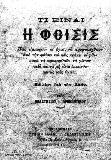 - «Τι είναι η Φθίσις, βιβλίον δια τον λαόν, Υπό Αναστασίου Ι. Αραβαντινού, Εν Αθήναις 1910. Ο Κεφαλονίτης ιατρός καταγόμενος από τους Σουλλάρους, με σπουδαία δραστηριότητα σ ’όλη την Ελλάδα, ήταν από τους πρώτους που κυκλοφόρησε φυλλάδιο προς ενημέρωση του λαού. Πέρα από την ιστορία και την εξέλιξη της φυματίωσης, ο Αραβαντινός, γράφει κανόνες και τρόπους αντιμετώπισης αυτής της αρρώστιας, για να προφυλάξει τον κόσμο από την έξαρση που είχε επί των ημερών του.