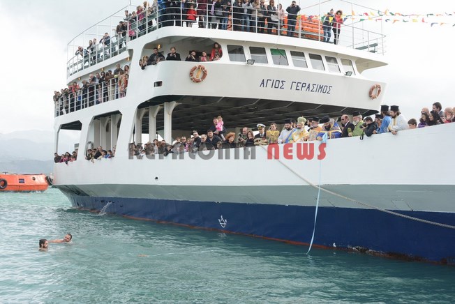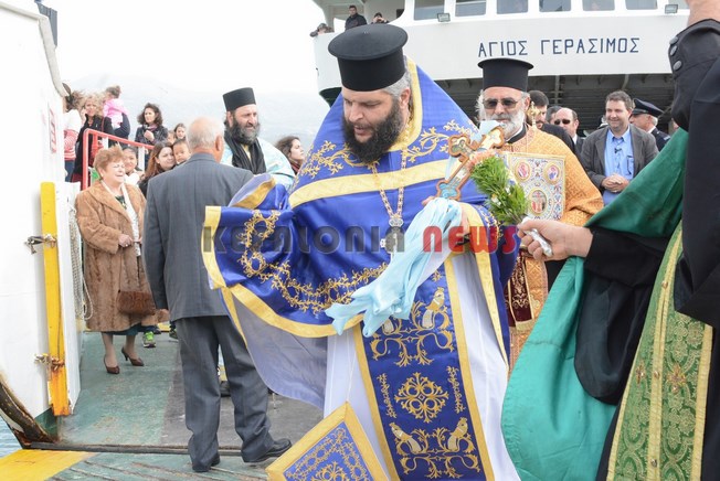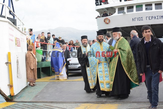 Με το φέρυ μπωτ ήρθε ο Μητροπολίτης Κεφαλληνίας κ.κ. Δημήτριος με την ακολουθία για τον Αγιασμό των υδάτων στο λιμάνι Ληξουρίου.