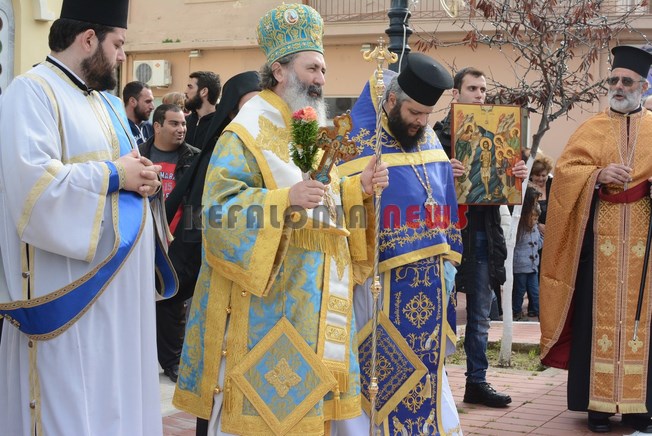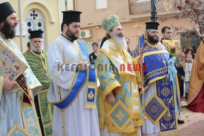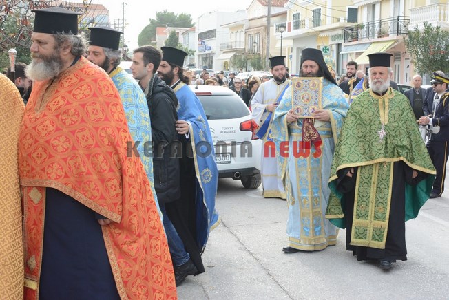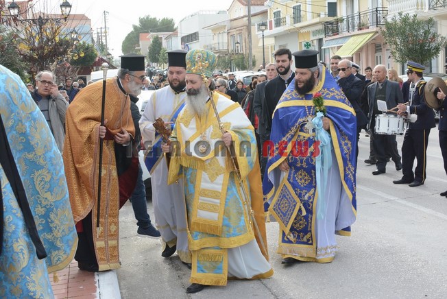 Λίγο αργότερα με την Φιλαρμονική Σχολή Ληξουρίου να ανοίγει τον δρόμο, ο Μητροπολίτης πραγματοποίησε και τον καθιερωμένο Αγιασμό στην κεντρική βρύση Ληξουρίου.