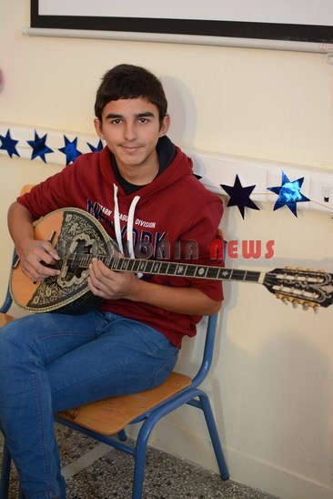 Εκτός από το Θεατρικό ακούσαμε Χριστουγεννιάτικα κάλαντα και τραγούδια. Η έκπληξη φέτος ήταν ο μαθητής του Σχολείου που συνόδεψε τα κάλαντα παίζοντας …..