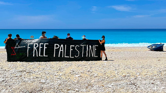 Στις 16/5/2021 ομάδα συντρόφων/συναγωνιστών πραγματοποίησε συμβολική δράση αλληλεγγύης προς τον λαό της Παλαιστίνης με άνοιγμα πανό στην πιο γνωστή παραλία του νησιού (Μύρτος)