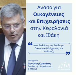 Με τις διατάξεις που προβλέπει, το νομοθέτημα αυτό προσφέρει ουσιαστική στήριξη στην τοπική κοινωνία και την οικονομία, και αγγίζει άμεσα τα νησιά μας, την Κεφαλλονιά και την Ιθάκη.