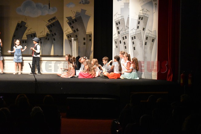 Δημοτικό Θέατρο «Ο ΚΕΦΑΛΟΣ». Αίθουσα «Διονύσιος Λαυράγκας». Το Θεατρικό Εργαστήρι Παδιών (έξι έως έντεκα ετών) του Πολιτιστικού Τμήματος Δήμου Αργοστολίου Παρουσίασε την θεατρική παράσταση «ΑΝΕΒΑ ΣΤΗ ΣΤΕΓΗ ΝΑ ΦΑΜΕ ΤΟ ΣΥΝΝΕΦΟ» του Γιάννη Ξανθούλη. Σκηνοθεσία Σταύρος Παπαδάτος. Πρώτη φορά είδαμε το Θέατρο γεμάτο με τόσα παιδιά. Αλλά και η σκηνή γέμισε από παιδιά. Εκπληκτική παράσταση.