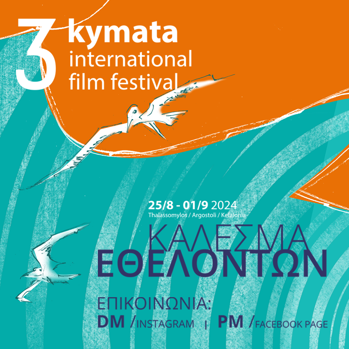 Το 3o Διεθνές Κινηματογραφικό Φεστιβάλ “ΚΥΜΑΤΑ 2024”, ζητά τη βοήθειά σας και απευθύνει ανοιχτό κάλεσμα εθελοντών προς όλους τους ενδιαφερόμενους που έχουν συμπληρώσει το 18ο έτος της ηλικίας τους και επιθυμούν να συμμετάσχουν στην προετοιμασία και στη διεξαγωγή του Φεστιβάλ.