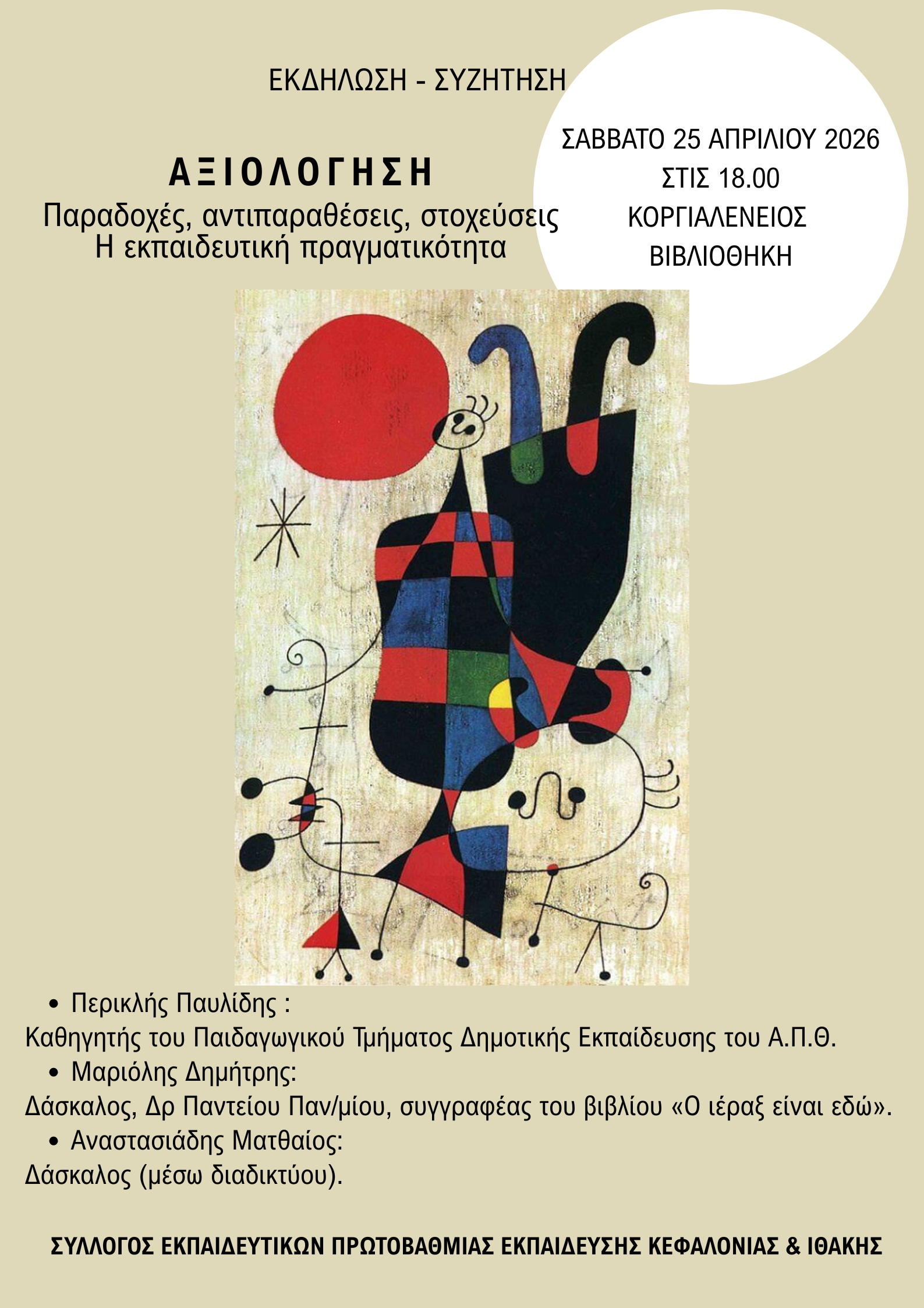 Το ΔΣ του ΣΥΛΛΟΓΟΥ ΕΚΠΑΙΔΕΥΤΙΚΩΝ ΠΡΩΤΟΒΑΘΜΙΑΣ ΕΚΠΑΙΔΕΥΣΗΣ ΚΕΦΑΛΟΝΙΑΣ ΚΑΙ ΙΘΑΚΗΣ σας προσκαλεί στην Εκδήλωση – Συζήτηση με θέμα: