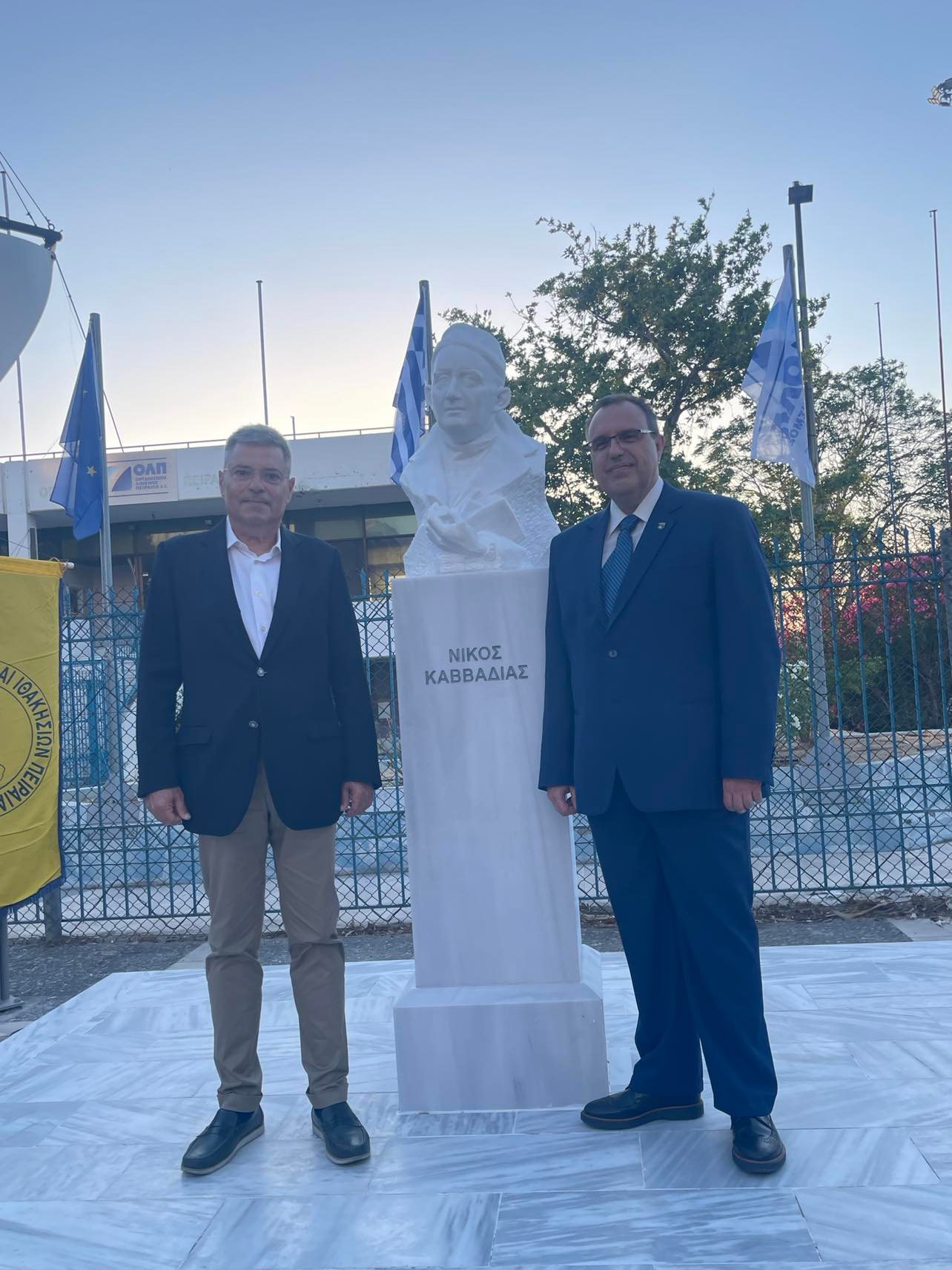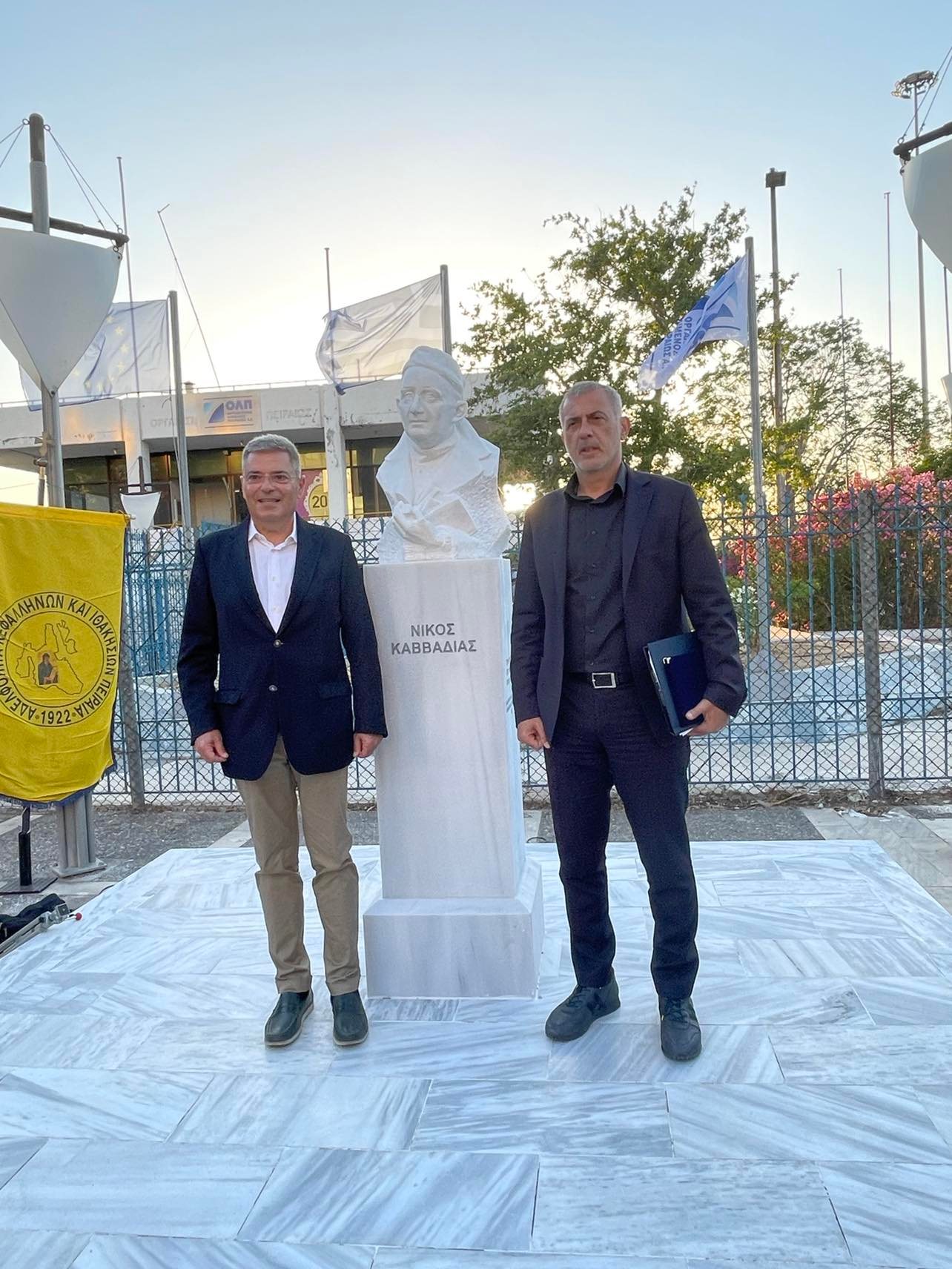 Θερμές ευχαριστίες στο Δήμο Πειραιά, στο Δήμαρχο κ. Μώραλη και στην Αδελφότητα Κεφαλλήνων και Ιθακησίων Πειραιά. Οι δεσμοί των νησιών μας με τον Πειραιά είναι άρρηκτοι, ως μέρος και της μεγάλης ναυτικής παράδοσης μας. Το άγαλμα του Καββαδία στο Αργοστόλι και η προτομή του στον Πειραιά είναι χαρακτηριστικός συμβολισμός αυτής της σχέσης, που δεν μπορεί να εκφραστεί καλύτερα από την κληρονομιά του ποιητή της θάλασσας, της ναυτοσύνης και του ταξιδιού.