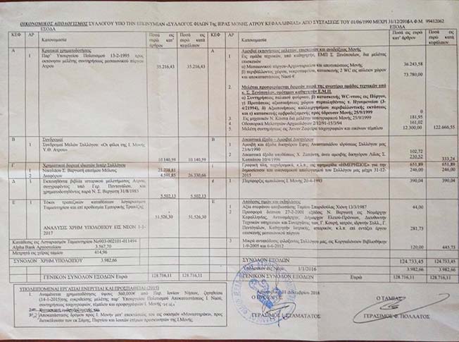Απολογισμός Ιεράς Μονής Άτρου
