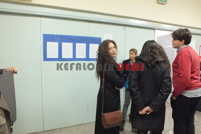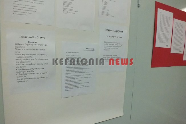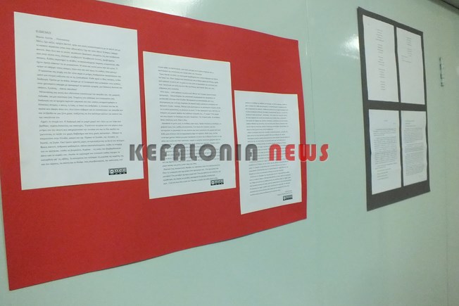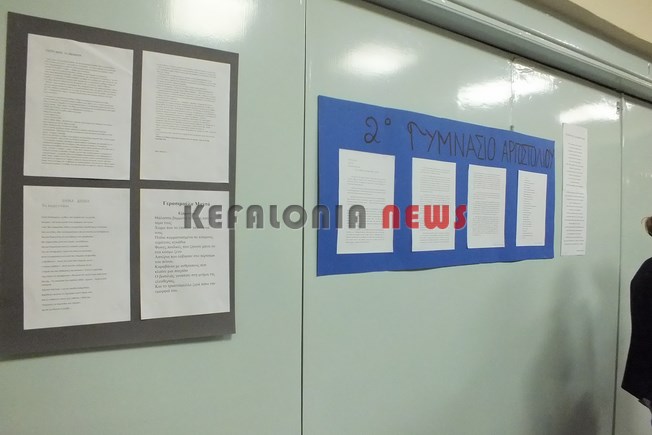 Έκθεση των ποιημάτων και των λογοτεχνικών κειμένων υπήρχε στο διάδρομο της αίθουσας.