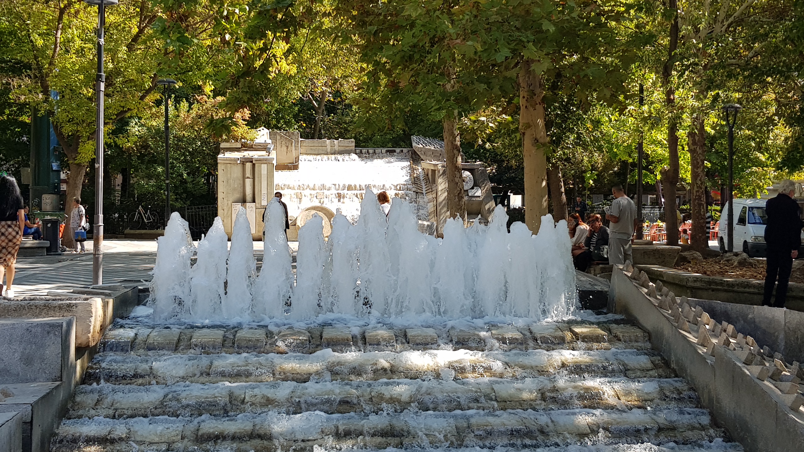 Ο «Γλυπτός Ποταμός» στην Πλατεία Ταχυδρομείου – έργο της Λαρισαίας γλύπτριας Νέλας Γκόλαντα.