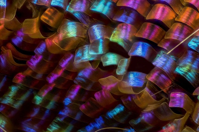 Τα λέπια από τα φτερά μίας πεταλούδας, τα οποία μεγεθυσμένα 20 φορές μοιάζουν σαν πολύχρωμες κορδέλες, στη δωδέκατη θέση Luciano Andres Richino / Nikon Small World