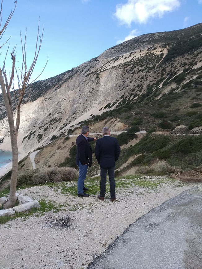 Επί τόπου βρέθηκαν ο Αντιπεριφερειάρχης κ. Τραυλός, ο Δήμαρχος Σάμης κ. Μονιάς και οι τεχνικές υπηρεσίες της Περιφέρειας Ιονίων Νήσων.