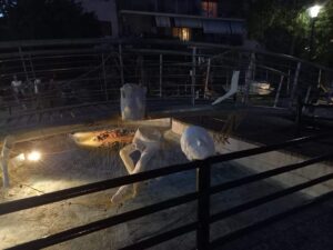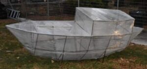 «Κιβωτός,» 2022. Mεταλλικές ράβδοι, διαφάνεια. 3m Χ 1.1 m Χ 0.7 m