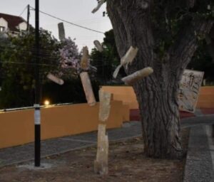 Το ίδιο μας λέει ο φοιτητής  Σ. Πανέρας με το γλυπτό του από θραύσματα δέντρου κατασκευασμένα από πολυεστέρα, εξαιρετικής αισθητικής και σύλληψης. Αναρωτιέται τι θα μείνει στη συλλογική μας μνήμη, μετά από τις αλλαγές κάθε σταθεράς που γνωρίζαμε. Μετά από τις καταστροφές που κάναμε στο οικοσύστημα και που κανένας θεός ή ιδεολογία ή αξία δεν μπόρεσε να σταματήσει.