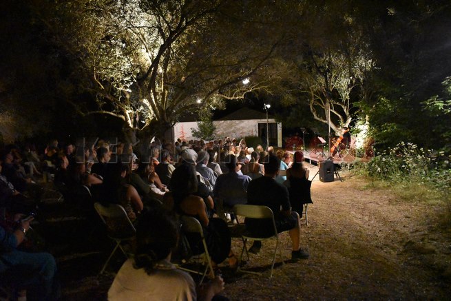 Ο συνθέτης Φίλιππος Τσαλαχούρης συντόνισε ένα σύνολο σπουδαστών του Ωδείου Αθηνών με σκοπό την σύμπραξη της μουσικής με την μαγεία της φυσικής σιωπής που περιβάλλει έναν κήπο. Ο ήχος δύο φλάουτων, του κλαρινέτου και του βιολοντσέλου καλείται να αναδείξει την μακρά ιστορία της μουσικής που γεννήθηκε από τη φύση ως δώρο στη σκέψη του ανθρώπου, ως ίαμα στην τραγική του μοίρα. Κάθε αρμονική σχέση μπορεί να σηκώσει το βάρος του χρόνου, κάθε ξύλινο όργανο που ηχεί στον ίσκιο ενός δέντρου μπορεί να συμβάλει στην κατανόηση της ίδιας της δημιουργίας. Το πρόγραμμα περιλαμβάνει έργα από τον J.S. Bach και τον G. Fr. Telemann τους G. Faure και C. Debussy μέχρι τον 20ο αιώνα και τους A. Piazzolla και L. Berio. Ο Φίλιππος Τσαλαχούρης συνέθεσε, τέλος, δύο σύντομα έργα ειδικά για αυτήν την συναυλία που ακούστηκαν σε πρώτη εκτέλεση.