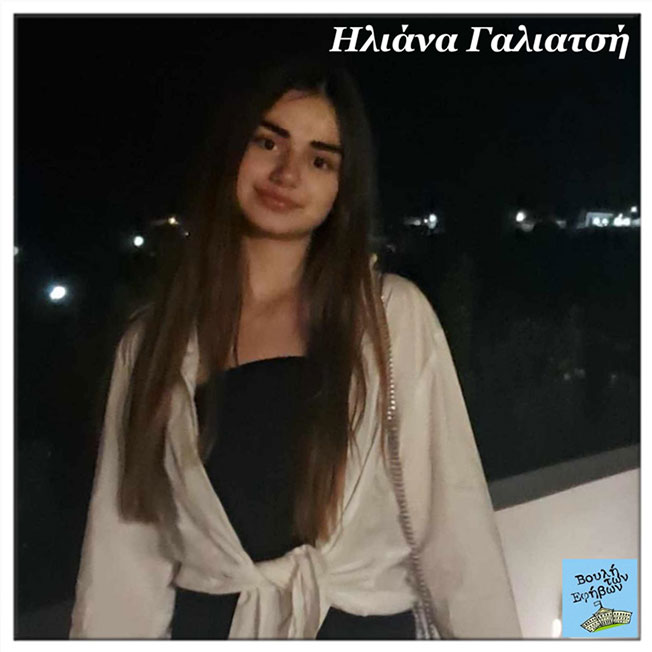 Ονομάζομαι Ηλιάνα Γαλιατσή και είμαι μαθήτρια της Β΄ Λυκείου στο Γυμνάσιο με Λυκειακές Τάξεις Μεσοβουνίων. Οι συμμαθητές μου, οι οποίοι συμμετείχαν μαζί μου στο πρόγραμμα Βουλή των Εφήβων, με επέλεξαν, για να γίνω η φωνή του σχολείου μας στο σημαντικό αυτό θεσμό.