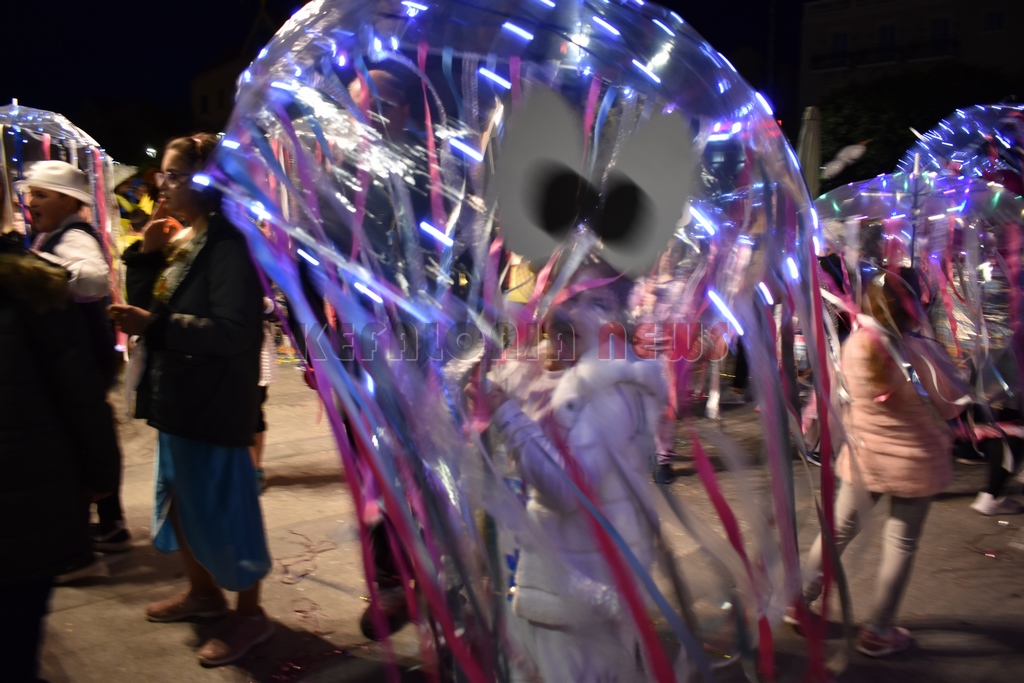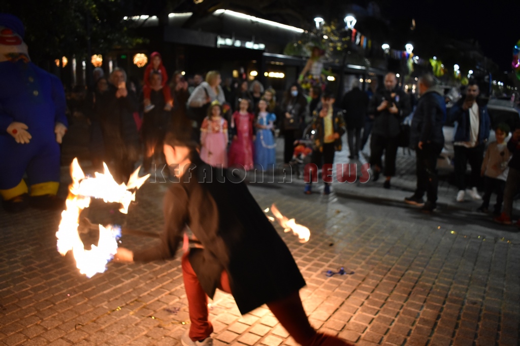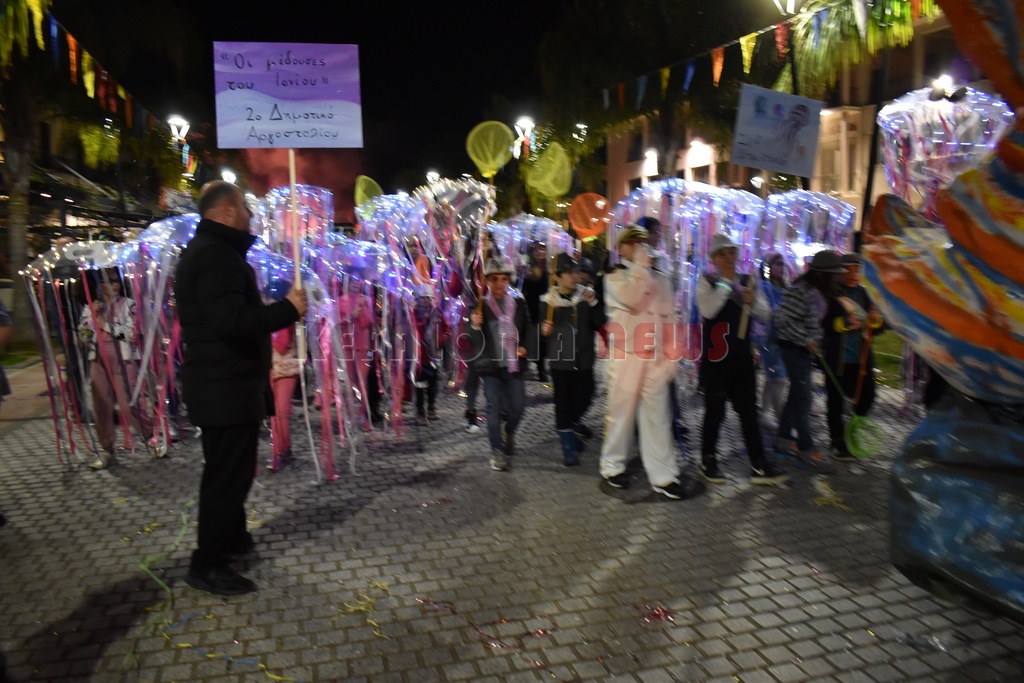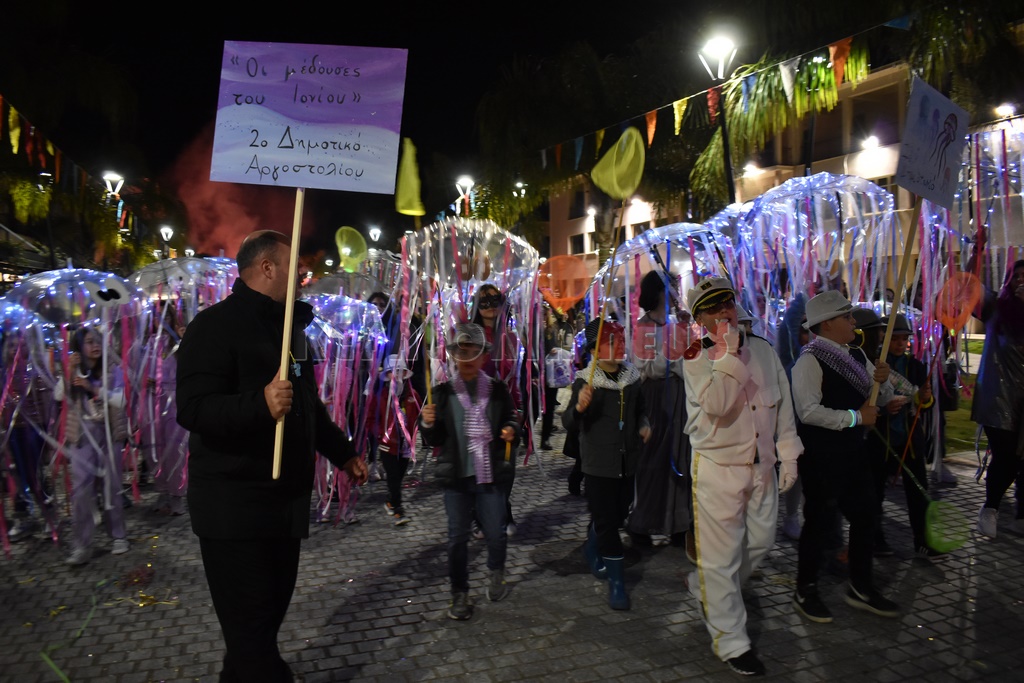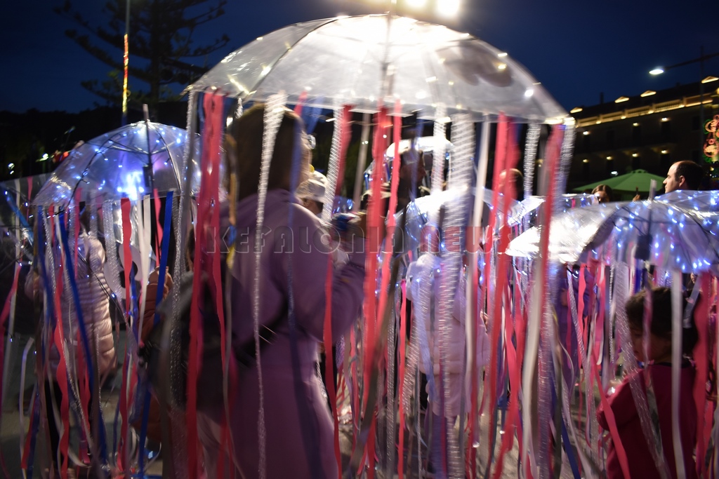 Από την πλατεία Βαλλιάνου στο Αργοστόλι ξεκίνησε η Βραδινή Παρέλαση του Αργοστολιώτικου Καρναβαλιού.