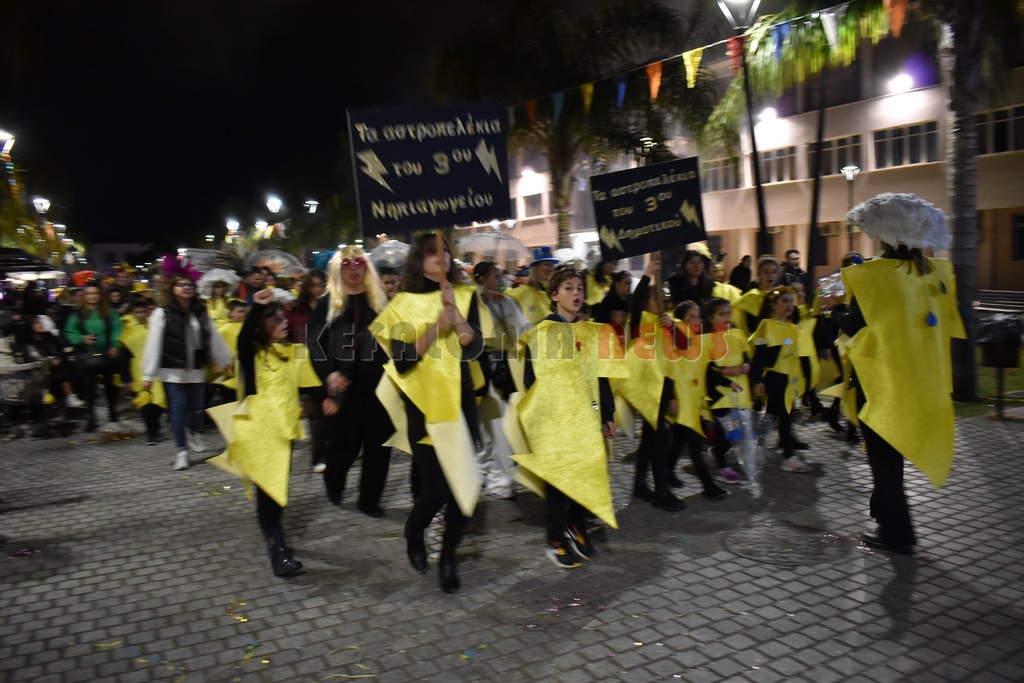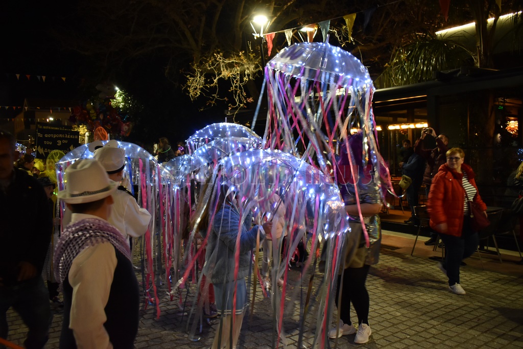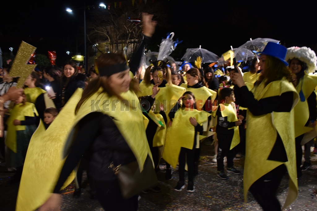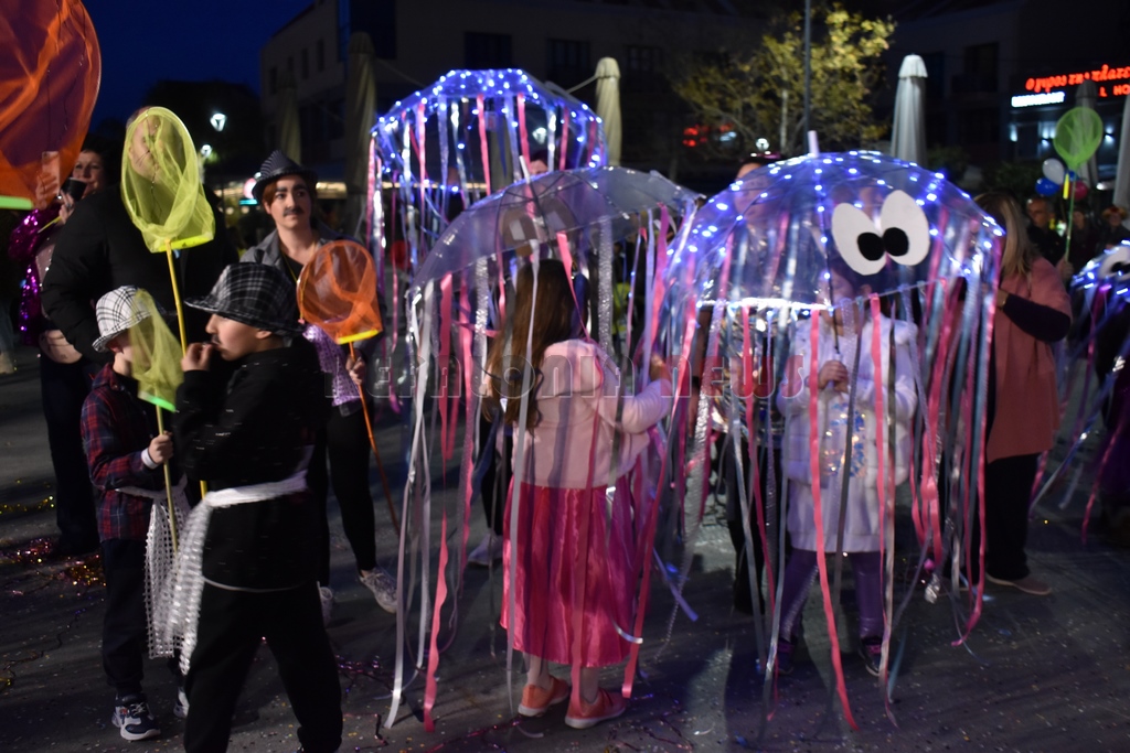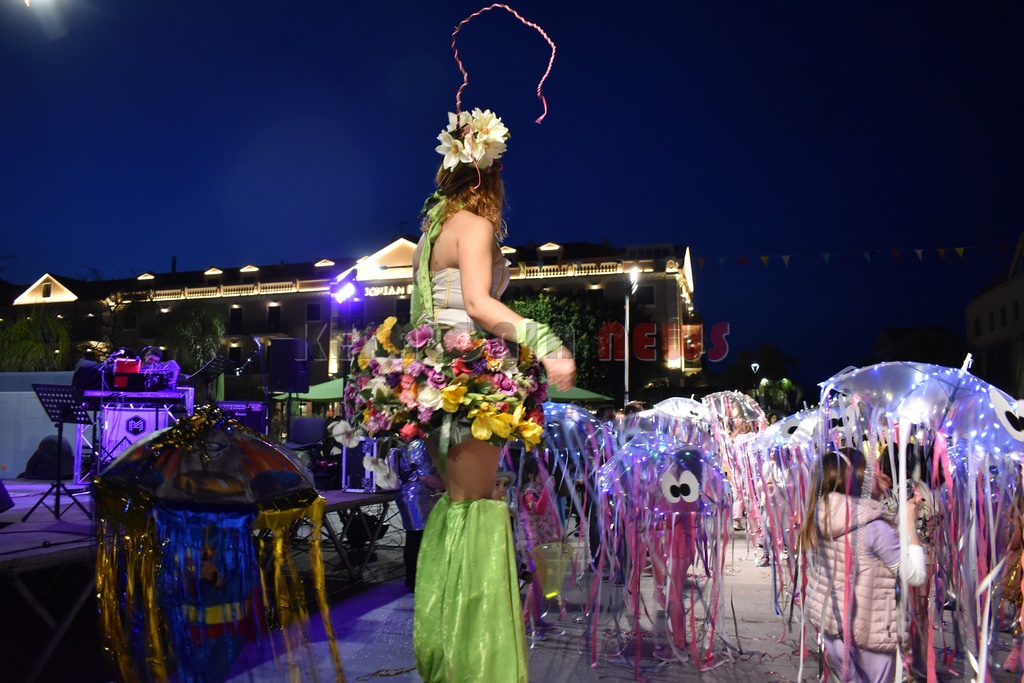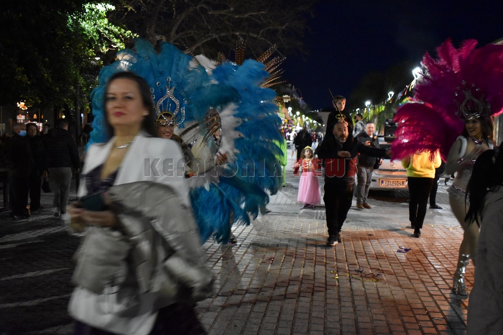 Από την πλατεία Βαλλιάνου στο Αργοστόλι ξεκίνησε η Βραδινή Παρέλαση του Αργοστολιώτικου Καρναβαλιού.