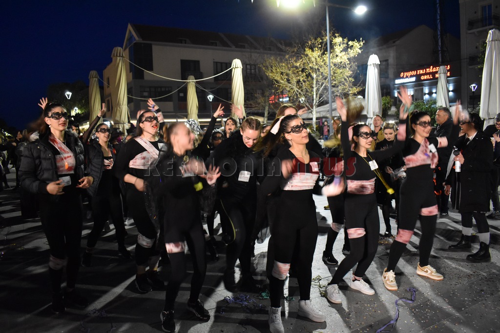 Μια μεγάλη και εντυπωσιακή Βραδινή παρέλαση που ξεσήκωσε την πόλη, περπατώντας στους πεζόδρομους του Αργοστολίου και μέσω του λιθόστρωτου και της παραλίας, επέστρεψαν στην πλατεία Βαλλιάνου, όπου διασκεδάσαμε με το επταμελές μουσικό σχήμα EFLocals με γνωστές disco, latin & pop επιτυχίες από το διεθνές ρεπερτόριο καθώς και ελληνικό ρετρό από τα 60s, 70s, 80s.