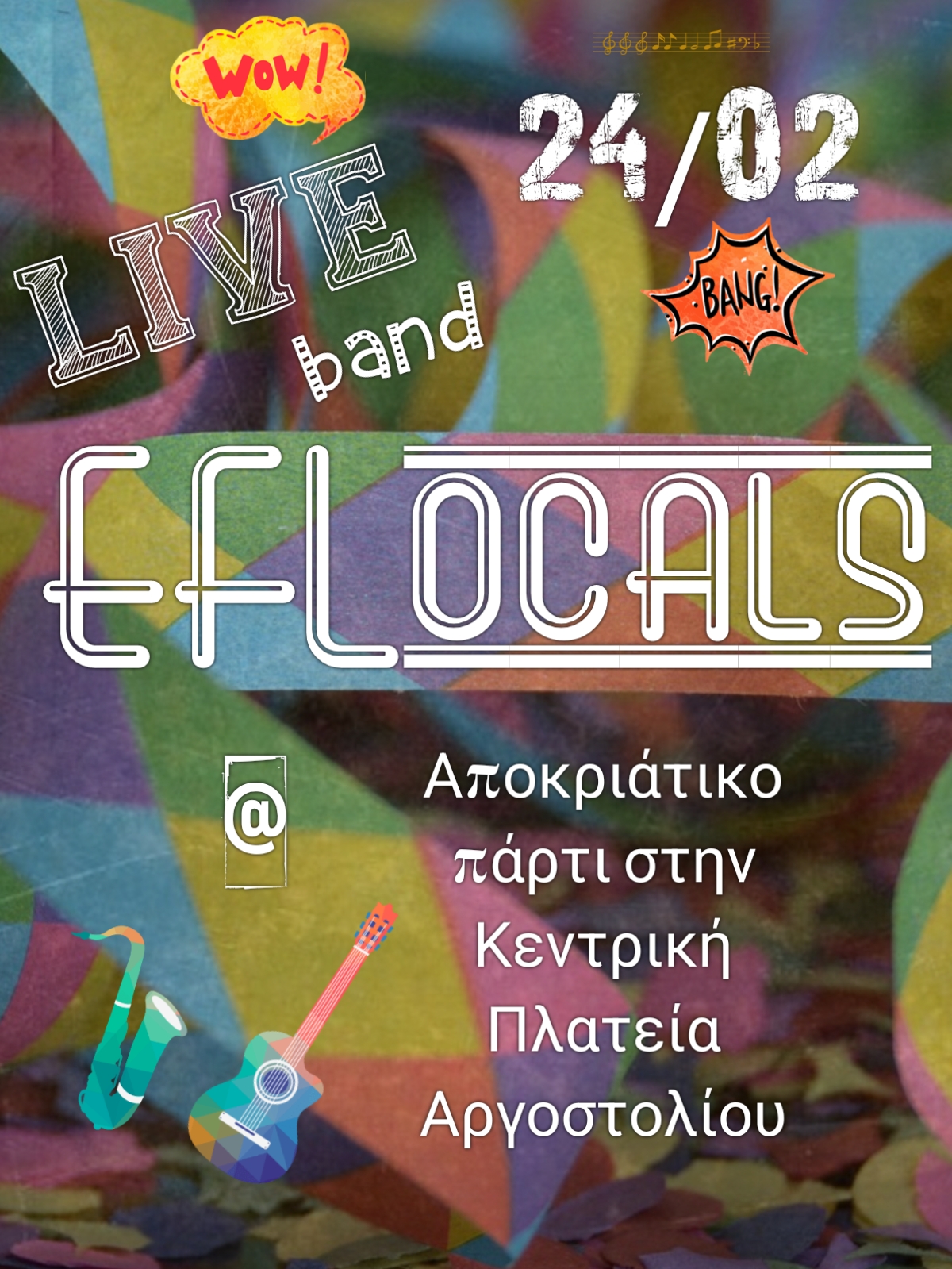 Οι σχολές χορού “ART & STYLE DANCE SCHOOL” & “PIROUETTE” θα μας παρουσιάσουν το πρόγραμμα τους και η βραδιά θα ολοκληρωθεί με το επταμελές μουσικό σχήμα “EFLOCALS” με γνωστές disco, latin & pop επιτυχίες από το διεθνές ρεπερτόριο καθώς και ελληνικό ρετρό από τα 60s, 70s, 80s.
