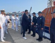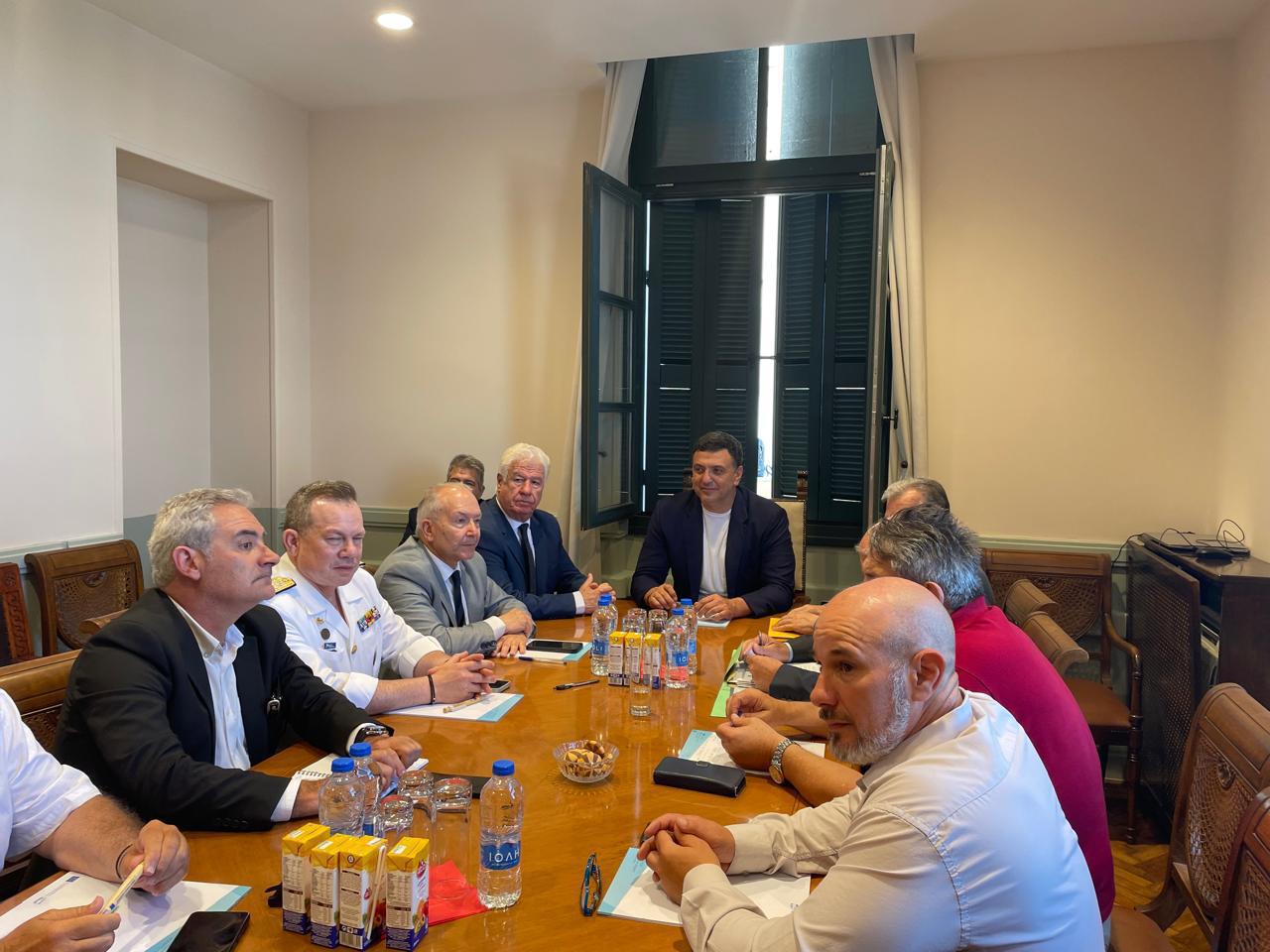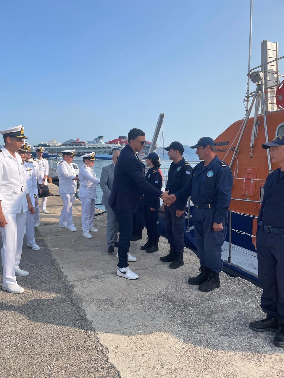 Τον Υπουργό υποδέχθηκε ο Υφυπουργός Ναυτιλίας και Νησιωτικής Πολιτικής, Στέφανος Γκίκας. Στη συνέχεια, συνοδευόμενος από τον Αρχηγό του Λ.Σ – ΕΛ.ΑΚΤ. Αντιναύαρχο Λ.Σ. Τρύφων Κοντιζά, τον Διοικητή της 3ης Περιφερειακής Διοίκησης Λ.Σ. – ΕΛ.ΑΚΤ., Πλοίαρχο Λ.Σ. Κωνσταντίνο Κορίζη και τον Λιμενάρχη του Κεντρικού Λιμεναρχείου Κέρκυρας, Πλοίαρχο Λ.Σ. Αναστάσιο Σχοινά, επισκέφθηκε το Λιμεναρχείο όπου ενημερώθηκε από τον Περιφερειάρχη και τον Λιμενάρχη για θέματα που αφορούν στη δραστηριότητα της Περιφέρειας και του Λιμεναρχείου και συζήτησε με τα στελέχη της Λιμενικής Αρχής. Έπειτα, ο Υπουργός μετέβη για επιθεώρηση στα περιπολικά σκάφη του Λ.Σ-ΕΛ.ΑΚΤ. που ελλιμενίζονται στο λιμάνι της Κέρκυρας και συνεχάρη τα πληρώματά τους για την διαρκή ετοιμότητά τους, τον επαγγελματισμό τους, την προσήλωσή τους στο καθήκον, την αυταπάρνηση και τον ζήλο που επιδεικνύουν καθημερινά με γνώμονα την προστασία της ανθρώπινης ζωής στη θάλασσα και την προάσπιση των θαλασσίων συνόρων της πατρίδας.