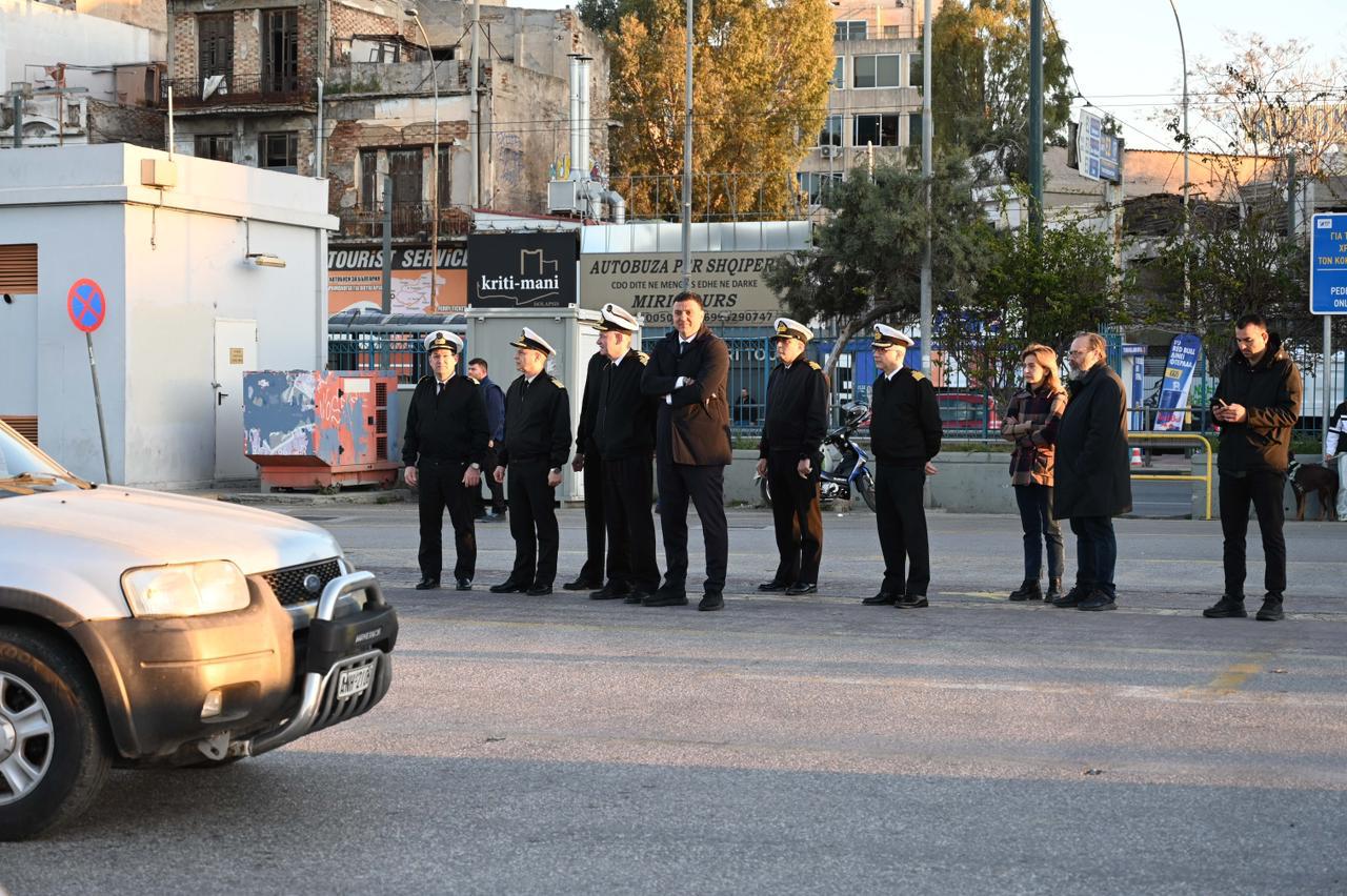 Τον κ. Κικίλια, συνόδευσαν ο Γενικός Γραμματέας Ναυτιλίας και Λιμένων, Ευάγγελος Κυριαζόπουλος, ο Αρχηγός του Λιμενικού Σώματος – Ελληνικής Ακτοφυλακής, Αντιναύαρχος Λ.Σ. Χρήστος Κοντορουχάς, ο Α’ Υπαρχηγός Λ.Σ.-ΕΛ.ΑΚΤ., Αντιναύαρχος Λ.Σ. Φώτιος Κιάμος, ο Β’ Υπαρχηγός Λ.Σ-ΕΛ.ΑΚΤ., Υποναύαρχος Λ.Σ. Ευστράτιος Δρακούλης, ο Λιμενάρχης του Κεντρικού Λιμεναρχείου Πειραιά, Υποναύαρχος Λ.Σ. Άγγελος Γραμματέας, καθώς και ανώτατοι και ανώτεροι Αξιωματικοί Λ.Σ. – ΕΛ.ΑΚΤ.