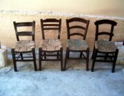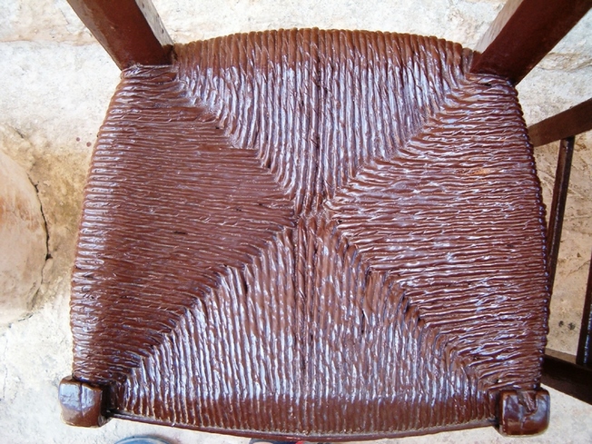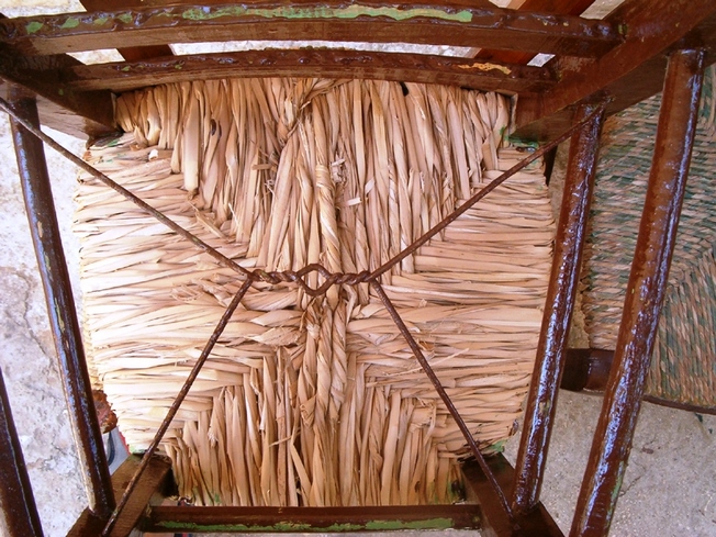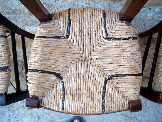 Έπειτα, από τη στερέωση του ξύλινου σκελετού της καρέκλας, ερχόταν η ώρα του ντυσίματος με το ψαθί της έδρας της καρέκλας.