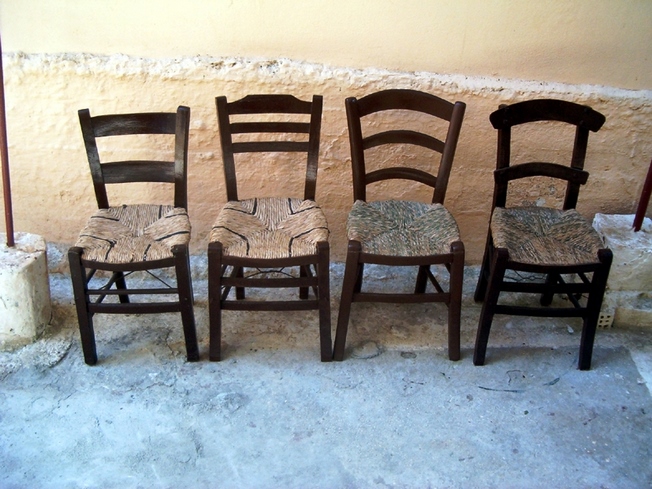 Τα πιο παλιά χρονιά οι καρέκλες ήταν κατασκευασμένες από ψαθί και ξύλο. Τότε, μιλούσαμε για την ψάθινη καρέκλα του σπιτιού, του καφενείου, του υπαίθριου σινεμά…. Οι καρέκλες ήταν κατασκευασμένες στο σκελετό τους από ξύλο σκληρό, συνήθως από μουριά, από οξιά ή πλάτανο. Το σχήμα της καρέκλας ήταν τέτοιο, ώστε να στηρίζει το σώμα μας και να παίρνει τη σωστή θέση του σκελετού (θέση ορθής γωνίας) όταν καθόμαστε, ώστε να μην κουράζεται το σώμα, έτσι ώστε να αποφεύγονται τα προβλήματα υγείας, που δημιουργούνται από την κακή στάση του σώματος.