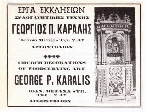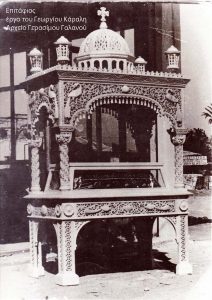 Μια σειρά  από  αξιόλογους δεσποτικούς θρόνους και επιταφίους, καθώς και τζαμόθυρα, έργα  του Κάραλη με παλιό στυλ,  που κοσμούν εκκλησίες του νησιού.