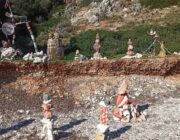Πριν μερικές εβδομάδες σας φωτογράφισα τις υπέροχες δημιουργίες από πέτρες κι αλλά καθημερινά υλικά στην τοποθεσία Τρύπες του Πόρου Κεφαλονιάς! Σήμερα, σας παρουσιάζω αυτές τις δημιουργίες που παραπέμπουν στην Ιταλικής εμπνεύσεως “Arte Povere” ή την επονομαζόμενη “Φτωχή Τέχνη” (όπου φτιάχνει κάνεις τέχνη με ότι βρίσκεις) στα οποία έγιναν προσθήκες και βελτιώσεις από τον πολυτάλαντο δημιουργό τους, κάτοικο του Πόρου Γιάννη Θεοτοκάτο, νυν συνταξιούχος και πρώην φορτοεκφορτωτής, ο οποίος είναι και χειμερινός κολυμβητής και εμφανίζεται στις φωτογραφίες! Όπως μας υποσχέθηκε ο Γιάννης Θεοτοκάτος μέχρι την καλοκαιρινή τουριστική σεζόν που έρχεται σκοπεύει να κάνει κι άλλες προσθήκες στο αξιοθαύμαστο έργο του. Γεγονός που θα αποτελέσει σίγουρα ένα εξαιρετικά ευχάριστο θέαμα για όλους τους επισκέπτες του Πόρου! Μπράβο του κι εις ανώτερα!