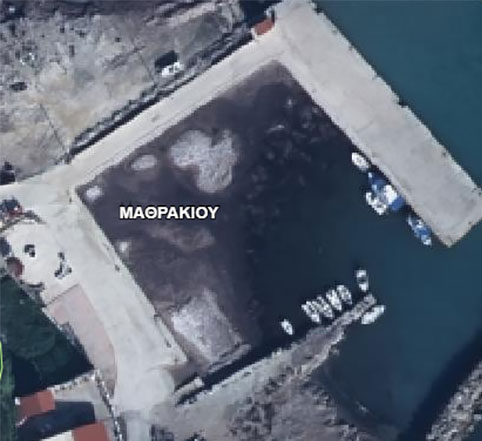 Μια ιδιαίτερη αλλά χαρακτηριστική περίπτωση των προβλημάτων αυτών και πως οι κυβερνήσεις, διαχρονικά, τα αντιμετωπίζουν «ελαφρά τη καρδία», είναι το παράδειγμα του «λιμανιού» στο Μαθράκι. Το «λιμάνι» αυτό, στην καλύτερη περίπτωση μπορεί κάποιος να το χαρακτηρίσει ως αλιευτικό καταφύγιο με πολύ μικρή χωρητικότητα. Μικρή χωρητικότητα που σχεδόν κάθε χρόνο, όμως, ελαχιστοποιείται μέχρι εξαφάνισης, αφού με τις πρώτες τρικυμίες του χειμώνα, κυριολεκτικά «μπαζώνεται» από εκατοντάδες τόνους φύκια που τα κύματα στοιβάζουν μέσα σε αυτό (Φωτογραφία 1). Είναι χαρακτηριστικό πως ακόμα και ο Δασικός Χάρτης, που πρόσφατα αναρτήθηκε από την Δασική Υπηρεσία και αφορά το Μαθράκι, δείχνει το λιμάνι μισομπαζωμένο με φύκια (Φωτογραφία 2). Τα φύκια αυτά, όπως είναι φυσικό, σήπονται, αναδύουν οσμές έντονα δυσάρεστες που γίνονται αντιληπτές σε όλο το νησί, αλλά αποτελούν και εστίες κουνουπιών και άλλων εντόμων.