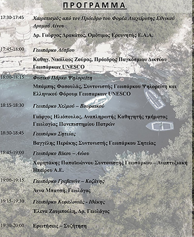 Διαδικτυακή Εκδήλωση “Γνωριμία με τα Γεωπάρκα από τον Φορέα Διαχείρισης Εθνικού Δρυμού Αίνου.
