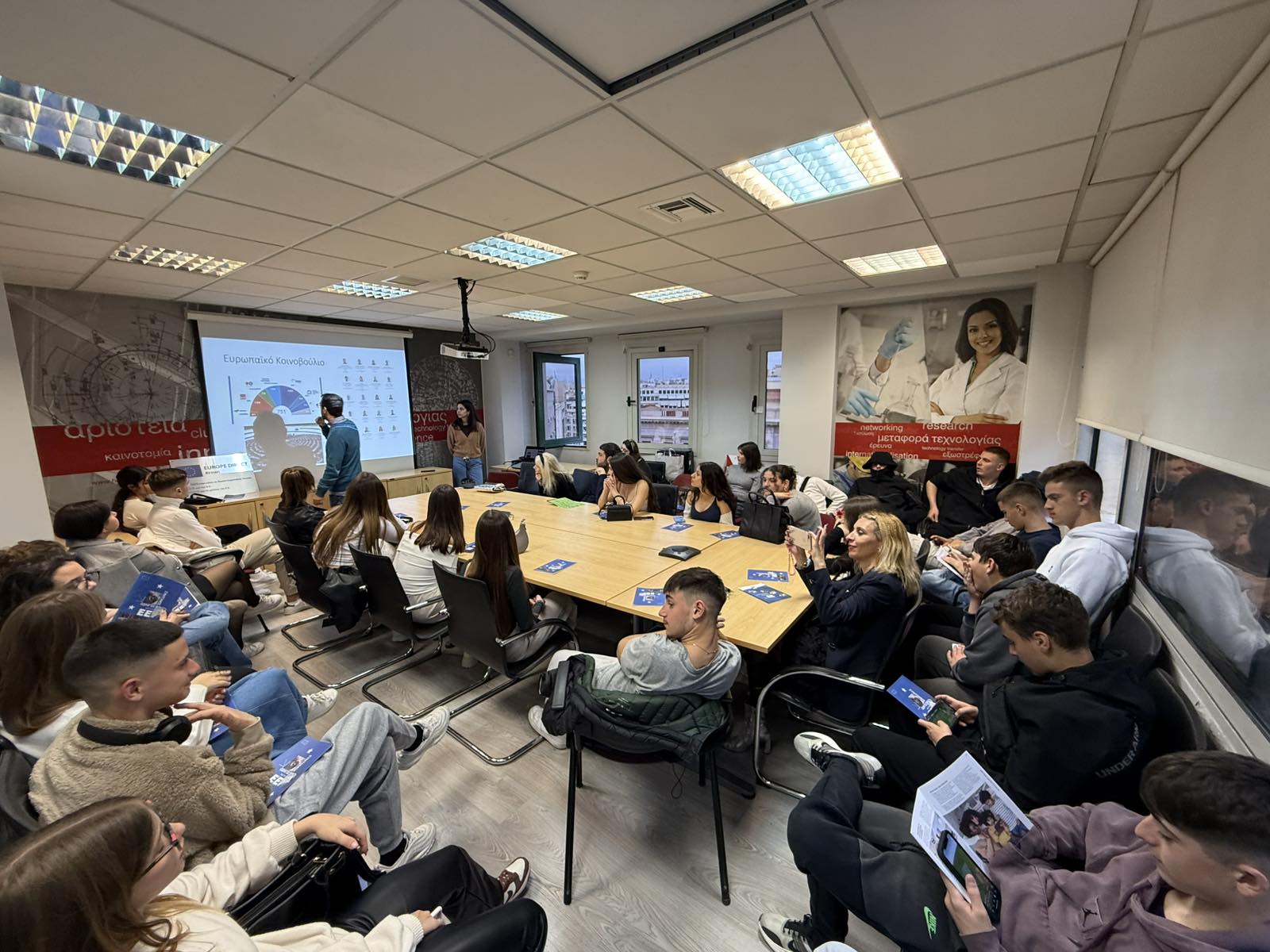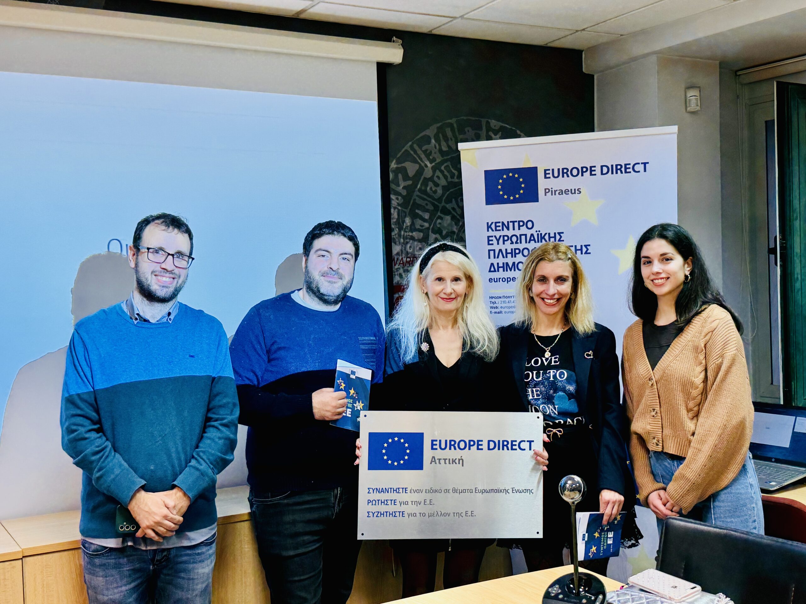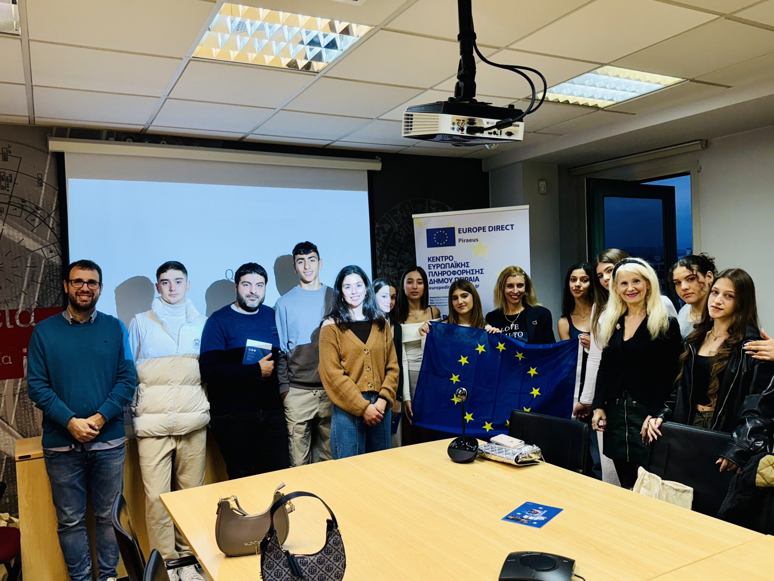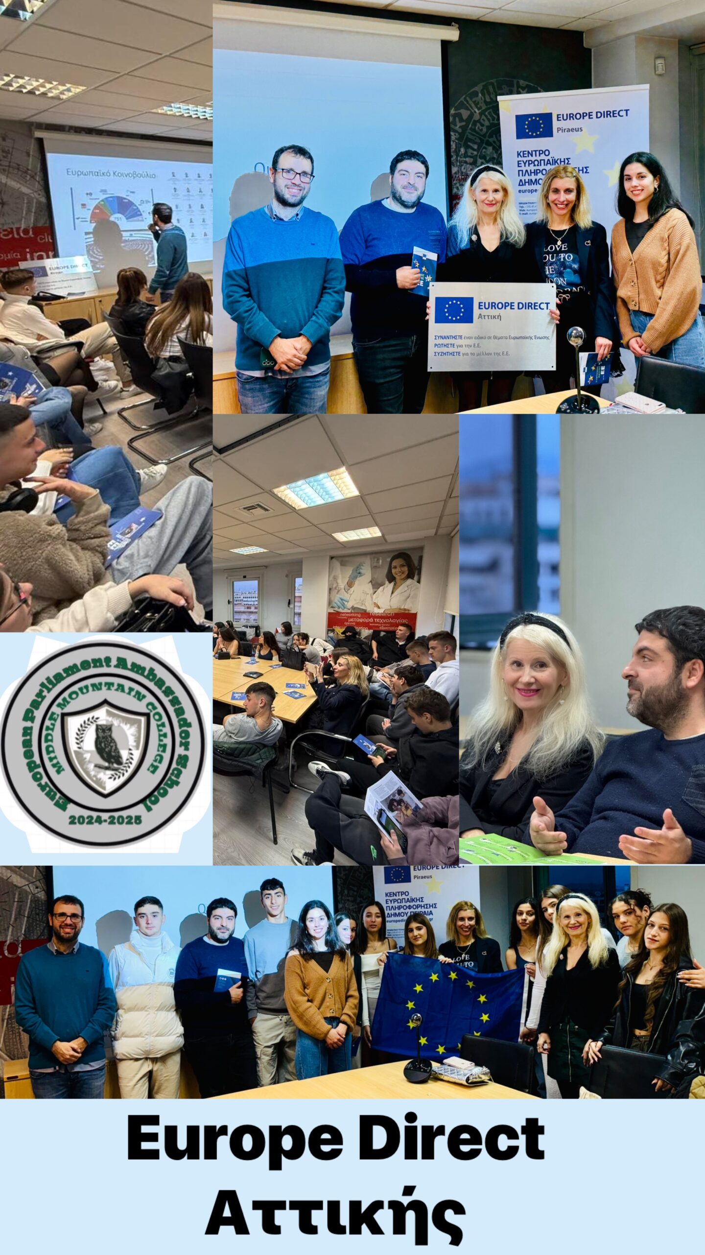 Το απόγευμα της ίδιας ημέρας, η αποστολή του σχολείου επισκέφθηκε το γραφείο του Europe Direct της Αθήνας, όπου πραγματοποιήθηκε παρουσίαση από τους υπεύθυνους, Γιώργο Παναγόπουλο και Ηλέκτρα Νησίδου, σχετικά με την ιστορία και τους θεσμούς της Ευρωπαϊκής Ένωσης. Οι υπεύθυνοι προσέφεραν πολύτιμο έντυπο και ηλεκτρονικό υλικό, το οποίο θα αξιοποιηθεί για να εμπλουτίσει το info point του σχολείου μας.