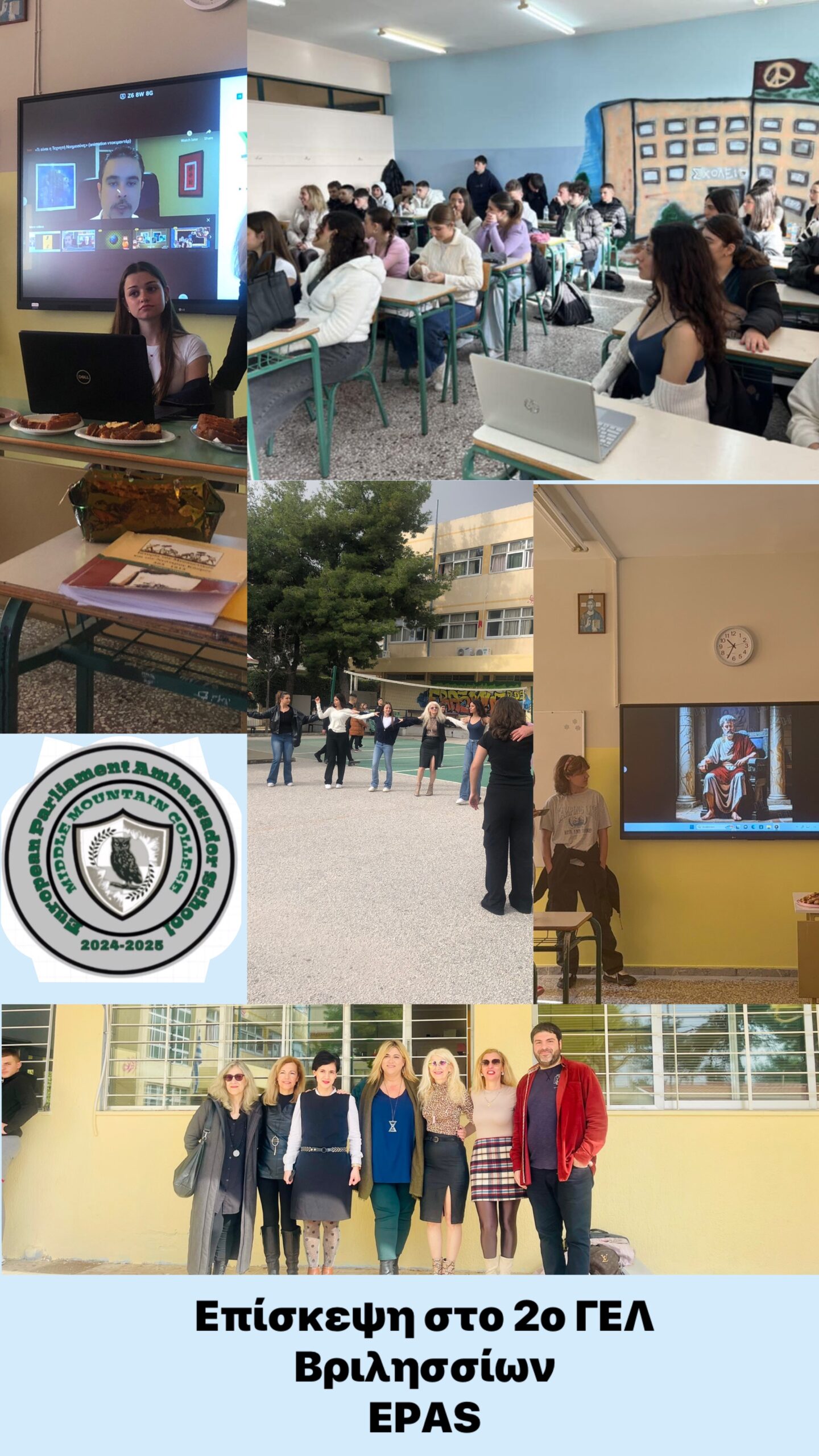 Με μεγάλη χαρά, οι junior και senior ambassadors του Γυμνασίου Μεσοβουνίων με Λυκειακές Τάξεις επισκέφθηκαν το 2ο Γενικό Λύκειο Βριλησσίων την Δευτέρα 3 Φεβρουαρίου, στο πλαίσιο μιας δημιουργικής, εκπαιδευτικής συνεργασίας για το πρόγραμμα «Σχολεία Πρέσβεις του Ευρωπαϊκού Κοινοβουλίου».