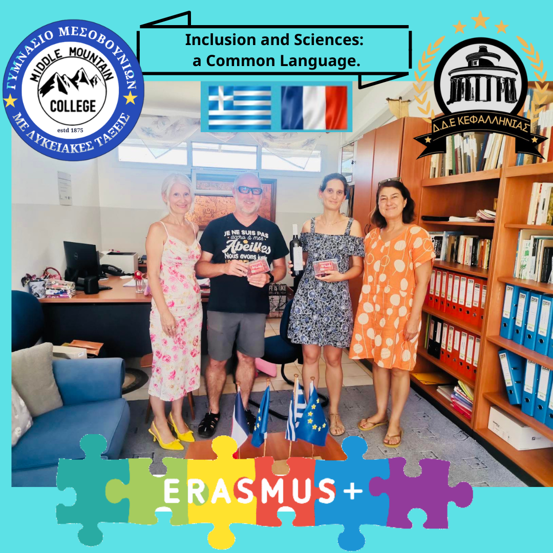 Με επιτυχία ολοκληρώθηκε η επίσκεψη δύο Γάλλων εκπαιδευτικών στο Γυμνάσιο με Λυκειακές Τάξεις Μεσοβουνίων, στο πλαίσιο της προετοιμασίας του νέου ευρωπαϊκού προγράμματος Erasmus+ με τίτλο “Inclusion and Sciences: a Common Language”. Το πρόγραμμα στοχεύει στην καλλιέργεια της ενσυναίσθησης και της ένταξης μέσω της επιστήμης, της γλώσσας και του πολιτισμού, αποτελώντας γέφυρα επικοινωνίας μεταξύ μαθητών/τριών και εκπαιδευτικών από την Ελλάδα και τη Γαλλία.