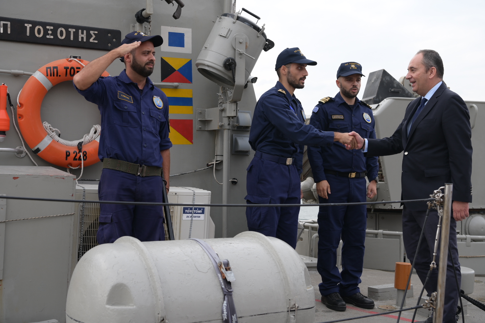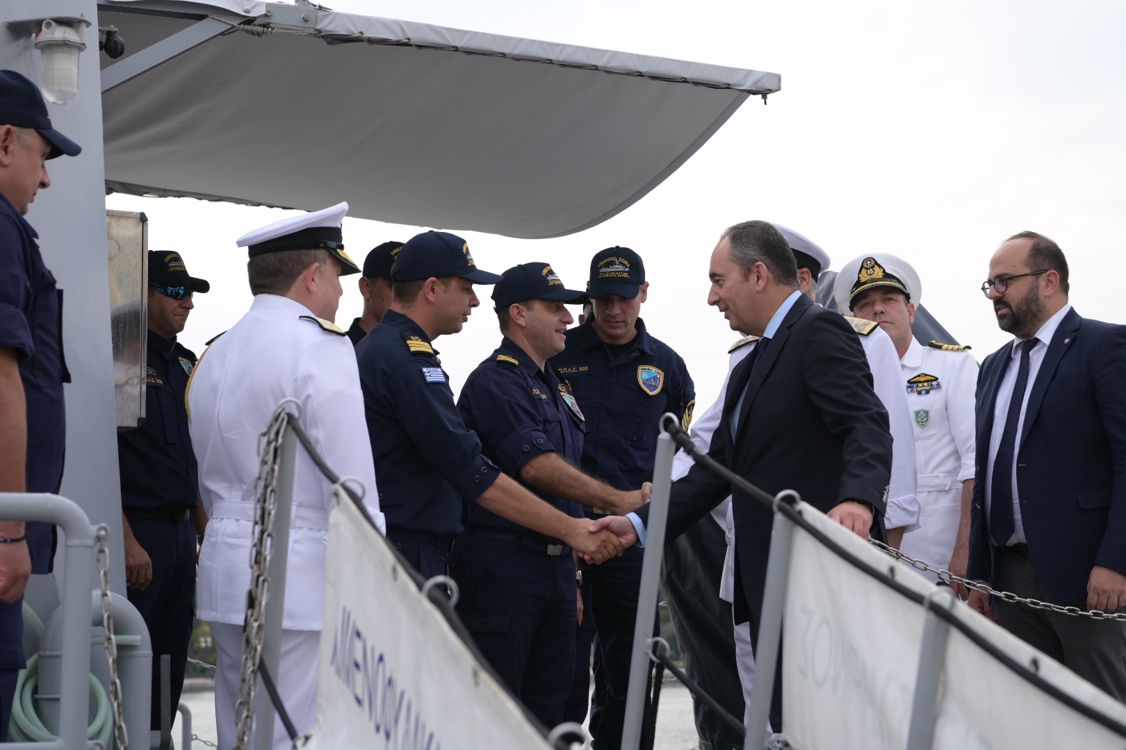 «Λίγες ημέρες αφ’ ότου τα κυκλώματα των αδίστακτων διακινητών, έστειλαν στο θάνατο συνάνθρωπους μας, είμαστε εδώ για να επαινέσουμε για μια ακόμα φορά τις γυναίκες και τους άνδρες του Λιμενικού Σώματος που επιχειρούν 24 ώρες την ημέρα, 365 ημέρες το χρόνο, σώζοντας ανθρώπινες ζωές και προστατεύοντας αποτελεσματικά τα θαλάσσια σύνορα μας.