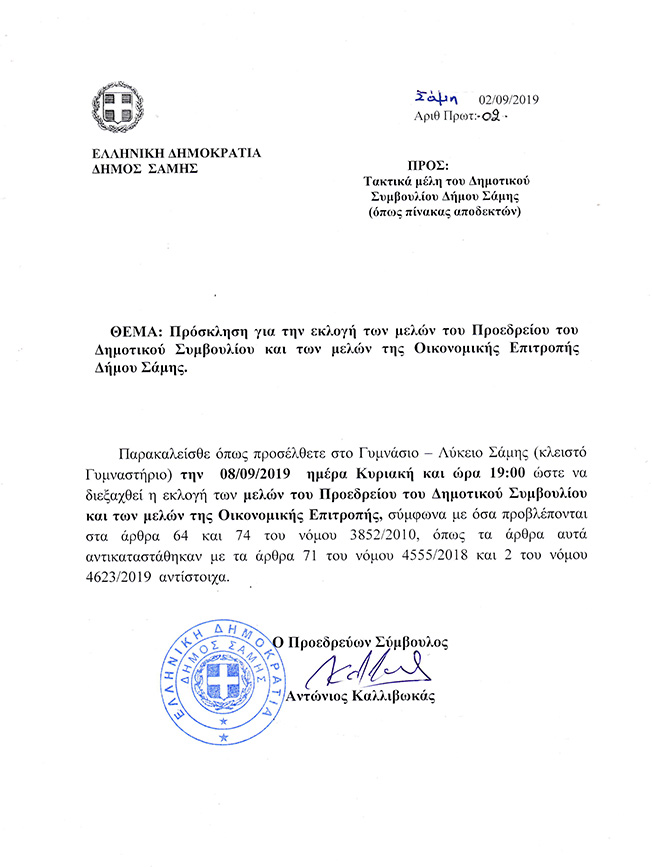 Δημοτικό Συμβούλιο στη Σάμη για την εκλογή του Προεδρείου.
