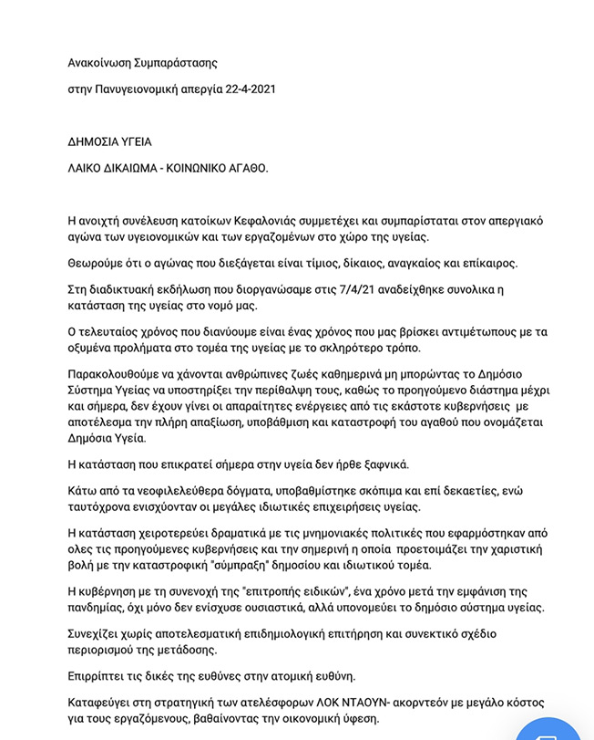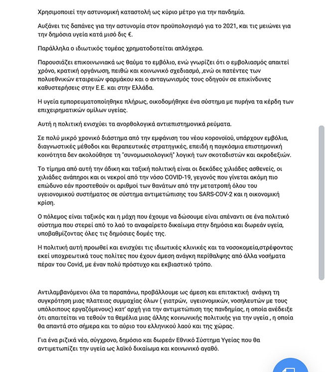 Δημόσια Υγεία: Λαϊκό δικαίωμα – Κοινωνικό αγαθό.